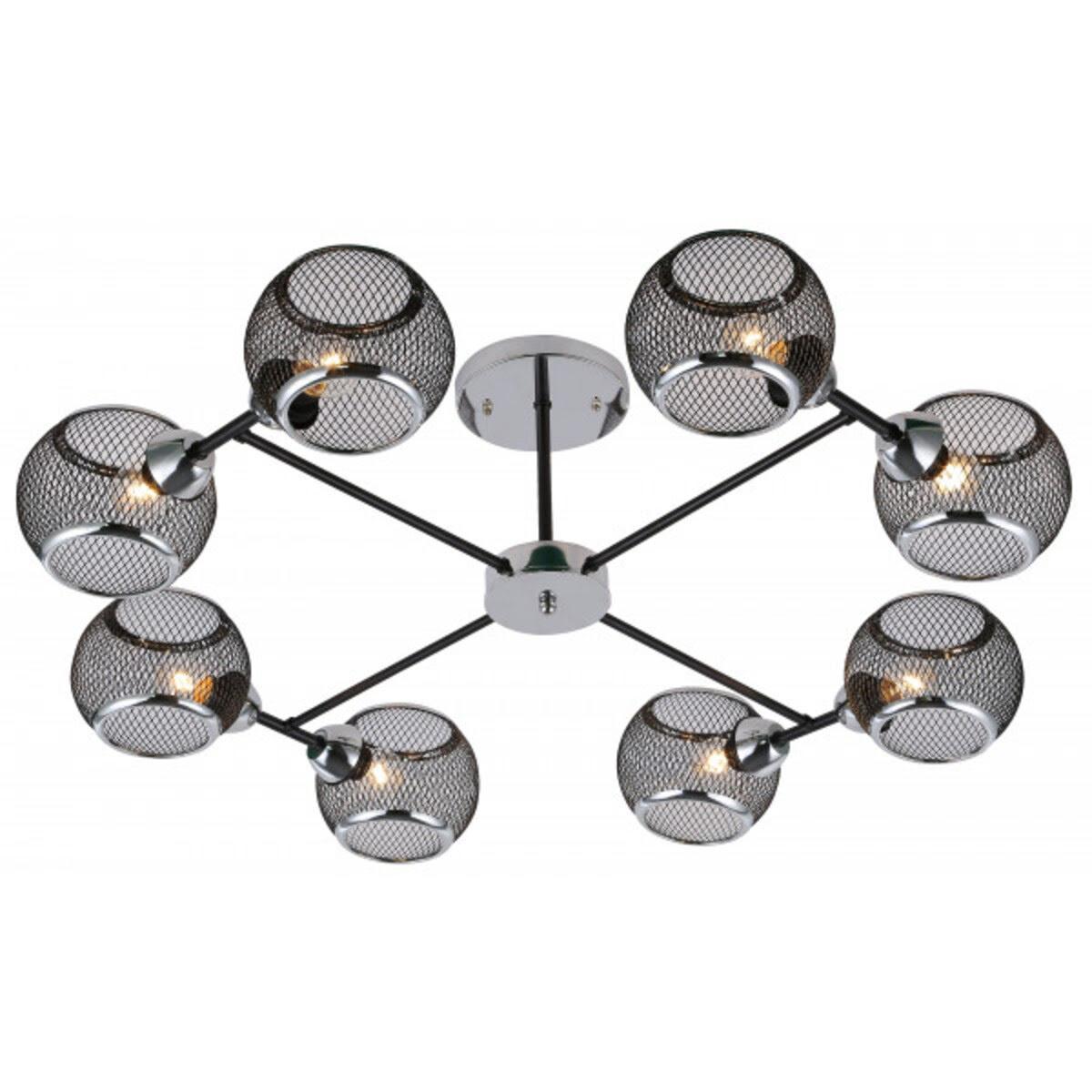 Производитель светильника рекомендует для устройства 8 светодиодных ламп с цоколем E27 и мощностью 40 W, что позволит осветить помещение площадью 24 кв.м. Габариты изделия: высота – 250 мм, диаметр – мм.