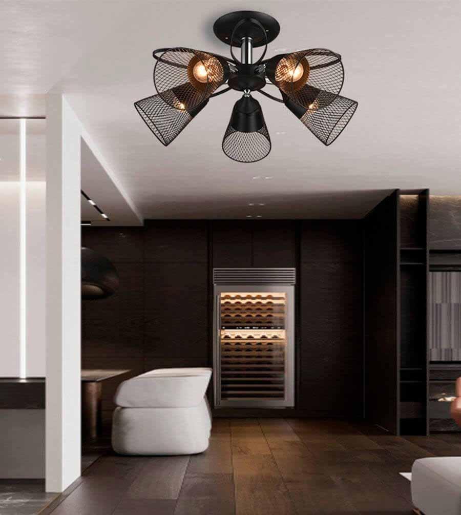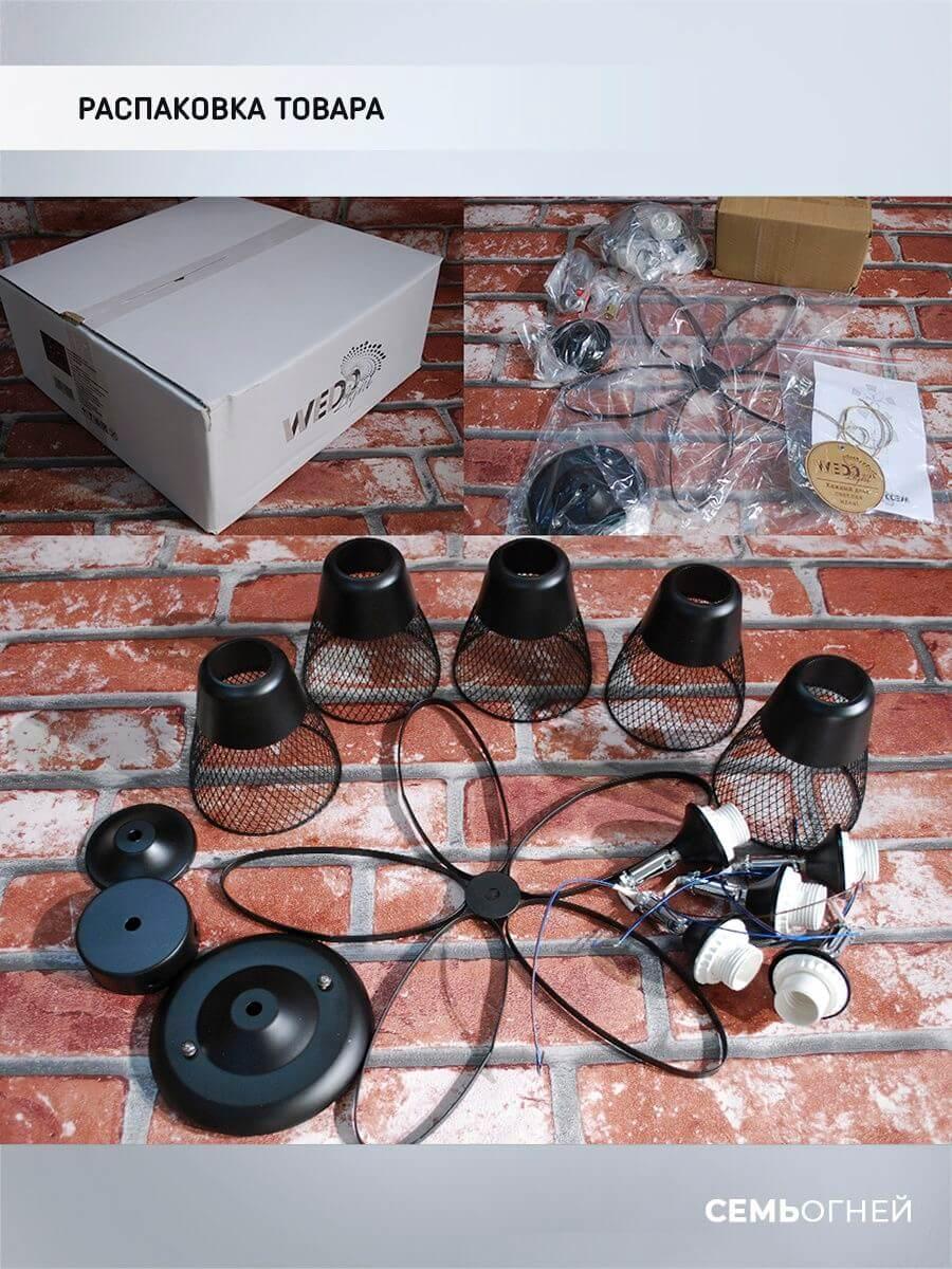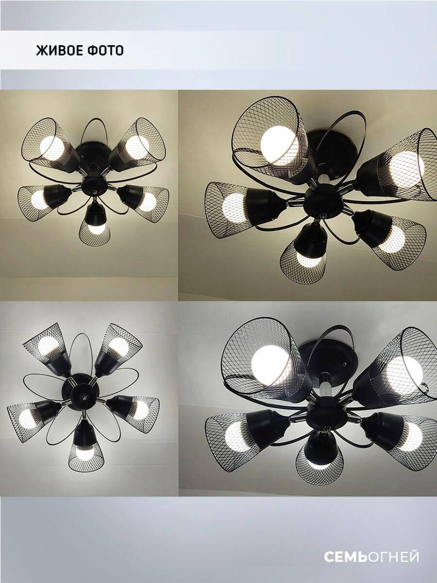 Производитель светильника рекомендует для устройства 5 ламп накаливания с цоколем E27 и мощностью 60 W, что позволит осветить помещение площадью 15 кв.м. Габариты изделия: высота – 250 мм, диаметр – 480 мм.