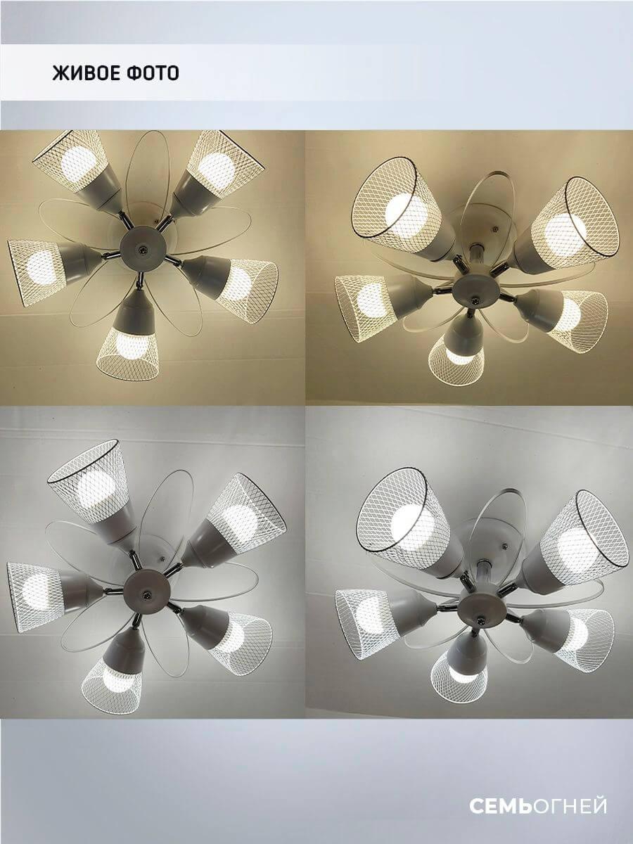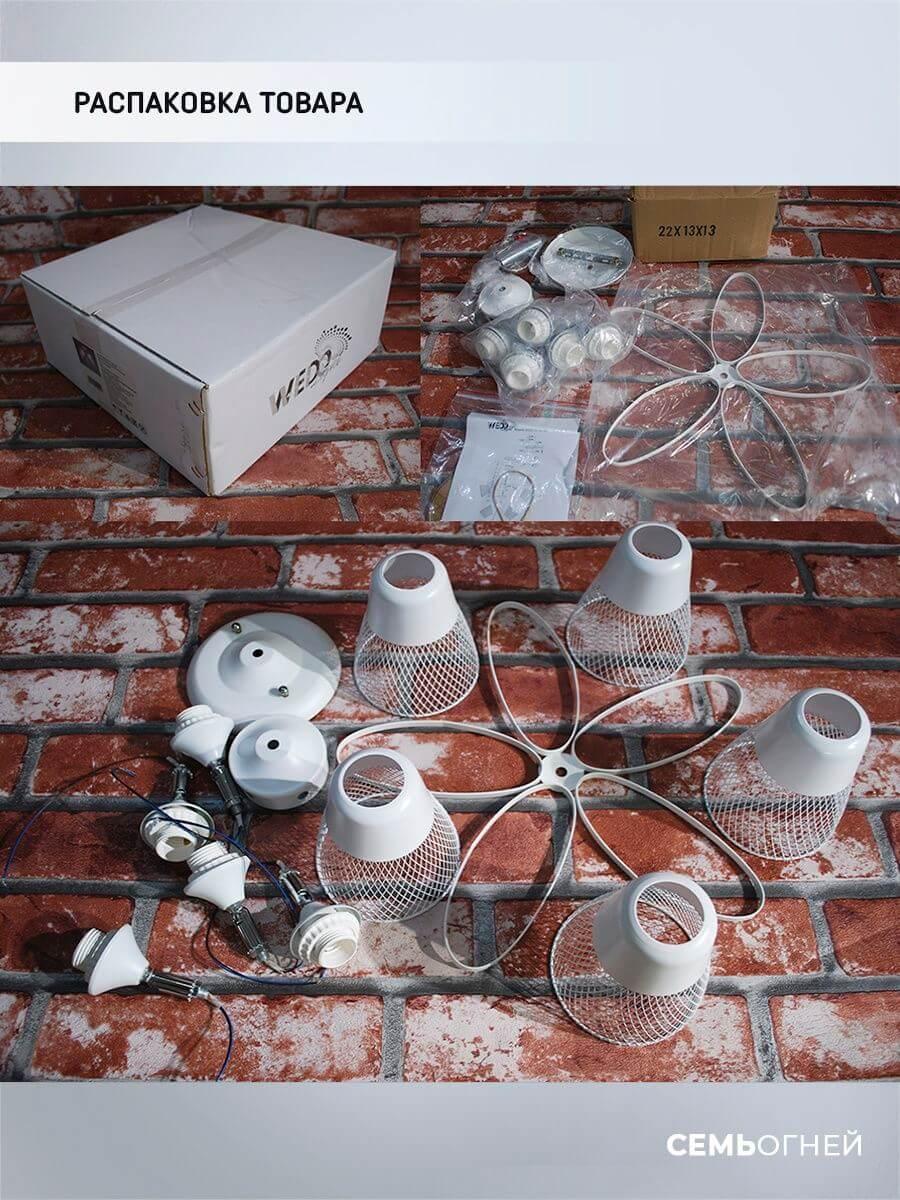 Производитель светильника рекомендует для устройства 5 ламп накаливания с цоколем E27 и мощностью 60 W, что позволит осветить помещение площадью 15 кв.м. Габариты изделия: высота – 250 мм, диаметр – 480 мм.