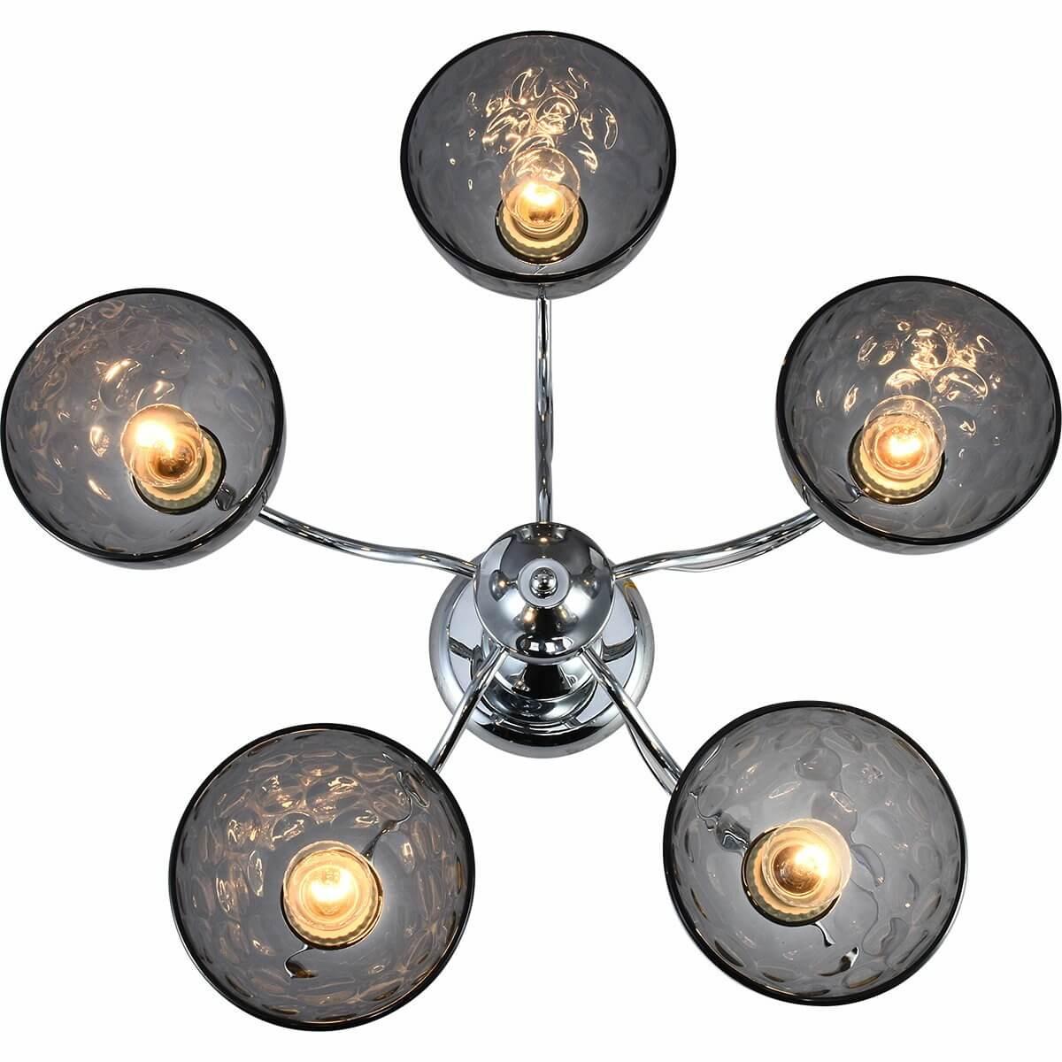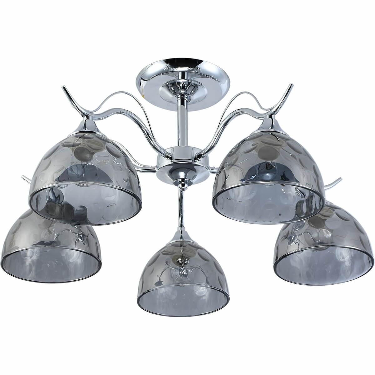 Производитель светильника рекомендует для устройства 5 ламп накаливания с цоколем E27 и мощностью 60 W, что позволит осветить помещение площадью 40 кв.м. Габариты изделия: высота – 280 мм, диаметр – мм.