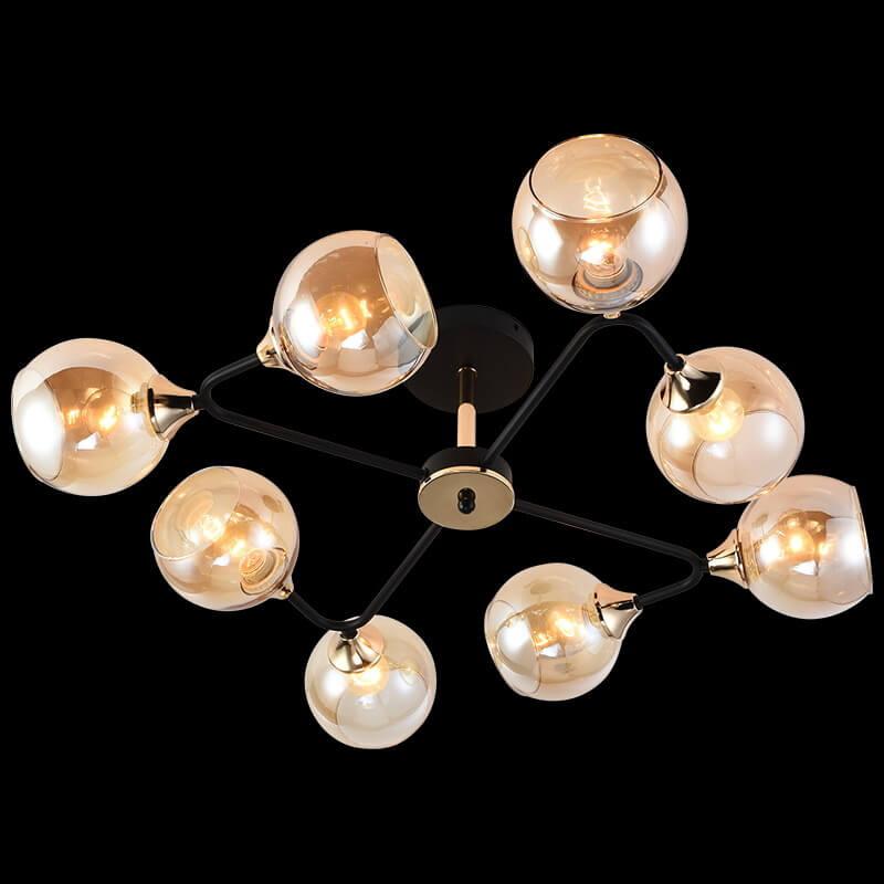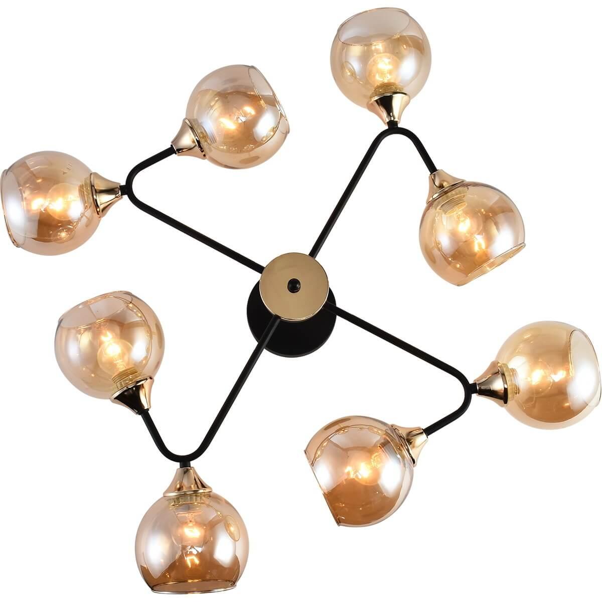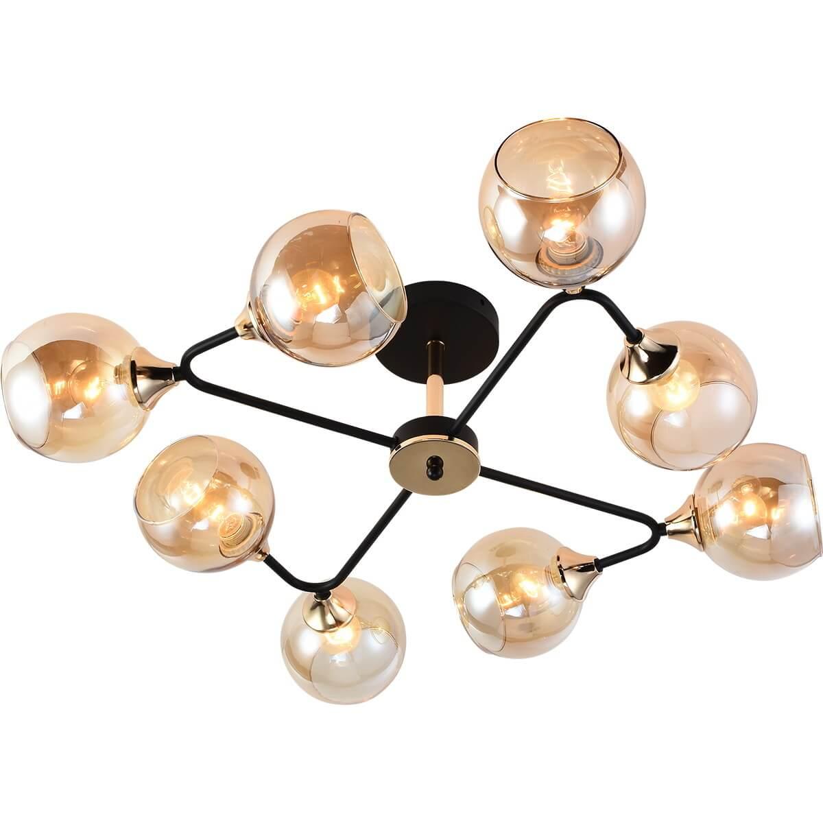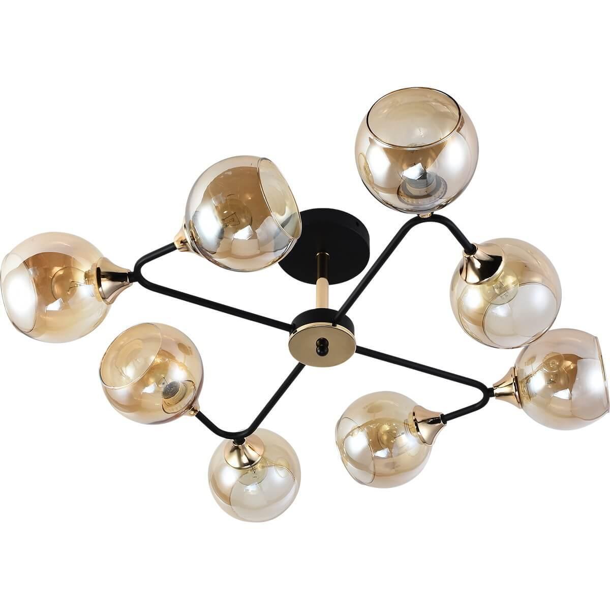 Производитель светильника рекомендует для устройства 8 ламп накаливания с цоколем E27 и мощностью 60 W, что позволит осветить помещение площадью 64 кв.м. Габариты изделия: высота – 225 мм, диаметр – мм.