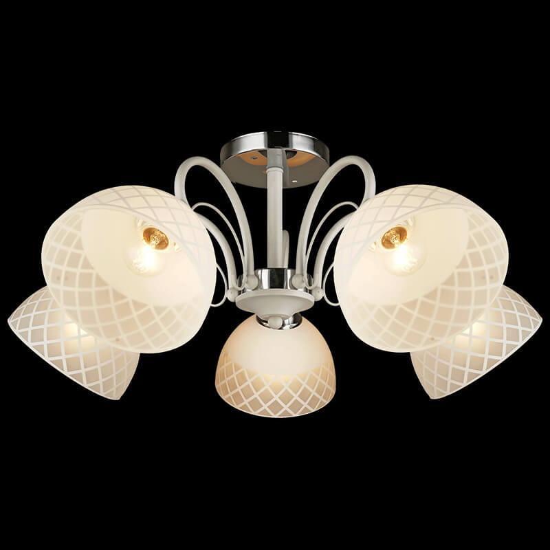 Производитель светильника рекомендует для устройства 5 ламп накаливания с цоколем E27 и мощностью 60 W, что позволит осветить помещение площадью 40 кв.м. Габариты изделия: высота – 240 мм, диаметр – мм.