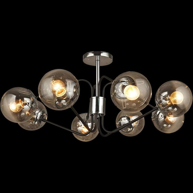 Производитель светильника рекомендует для устройства 8 ламп накаливания с цоколем E27 и мощностью 60 W, что позволит осветить помещение площадью 64 кв.м. Габариты изделия: высота – 300 мм, диаметр – мм.