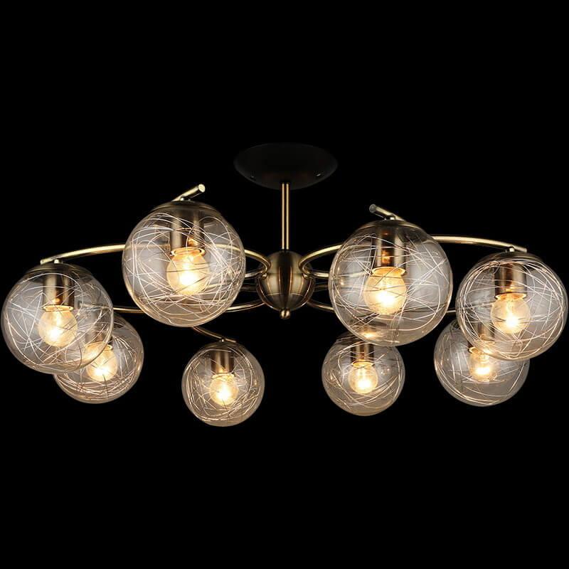 Производитель светильника рекомендует для устройства 8 ламп накаливания с цоколем E27 и мощностью 60 W, что позволит осветить помещение площадью 64 кв.м. Габариты изделия: высота – 310 мм, диаметр – мм.