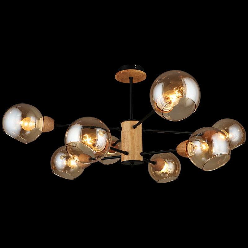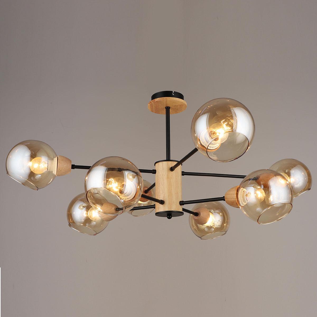 Производитель светильника рекомендует для устройства 8 ламп накаливания с цоколем E27 и мощностью 60 W, что позволит осветить помещение площадью 64 кв.м. Габариты изделия: высота – 410 мм, диаметр – мм.