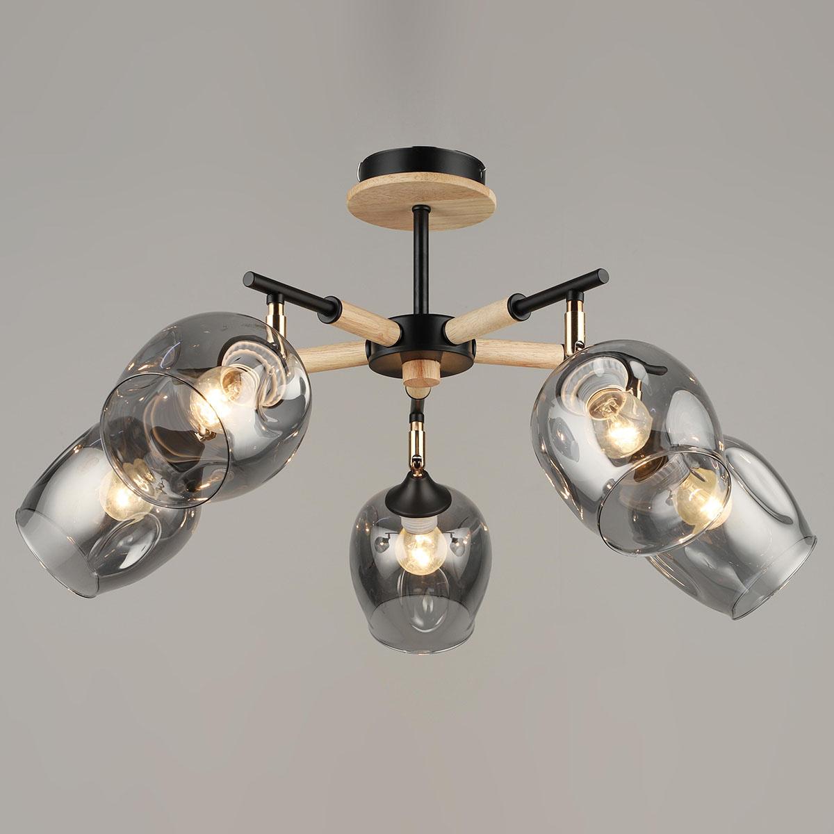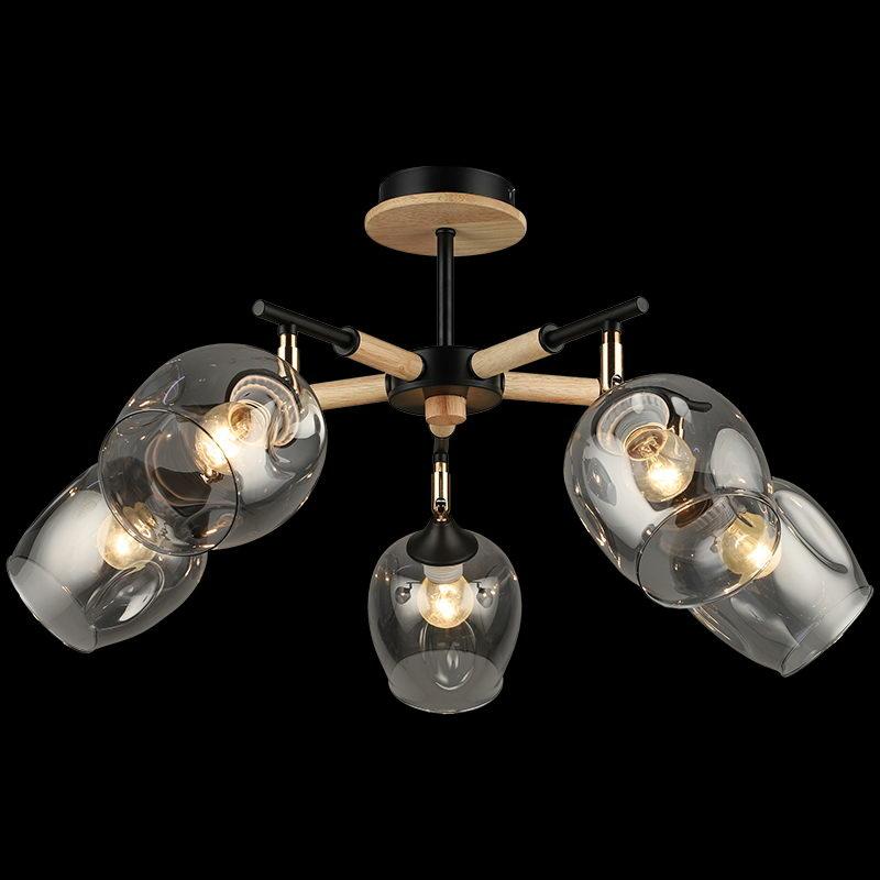 Производитель светильника рекомендует для устройства 5 ламп накаливания с цоколем E27 и мощностью 60 W, что позволит осветить помещение площадью 40 кв.м. Габариты изделия: высота – 340 мм, диаметр – мм.