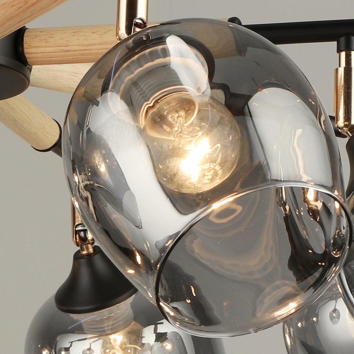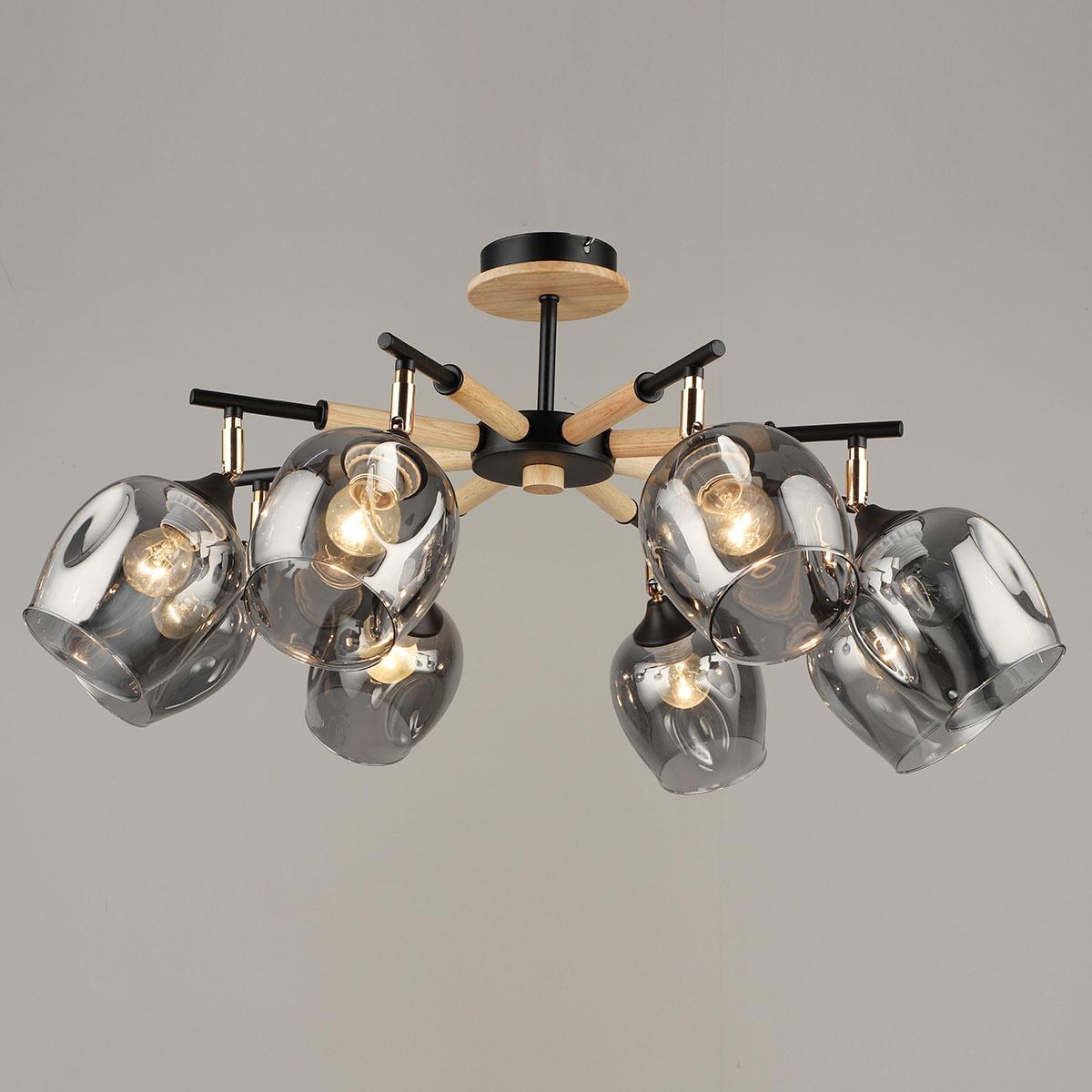 Производитель светильника рекомендует для устройства 8 ламп накаливания с цоколем E27 и мощностью 60 W, что позволит осветить помещение площадью 64 кв.м. Габариты изделия: высота – 340 мм, диаметр – мм.