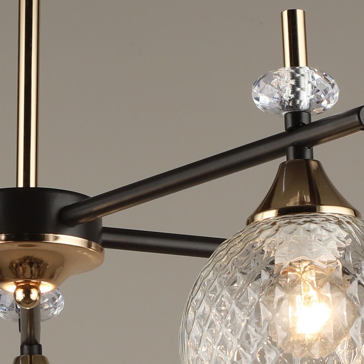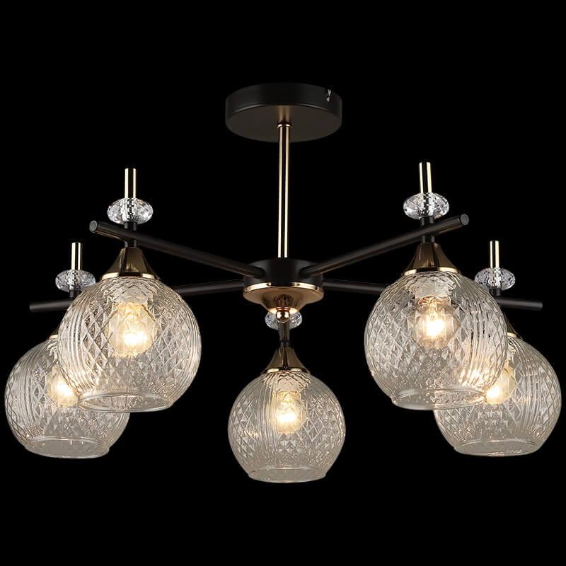 Производитель светильника рекомендует для устройства 5 ламп накаливания с цоколем E27 и мощностью 60 W, что позволит осветить помещение площадью 40 кв.м. Габариты изделия: высота – 345 мм, диаметр – мм.