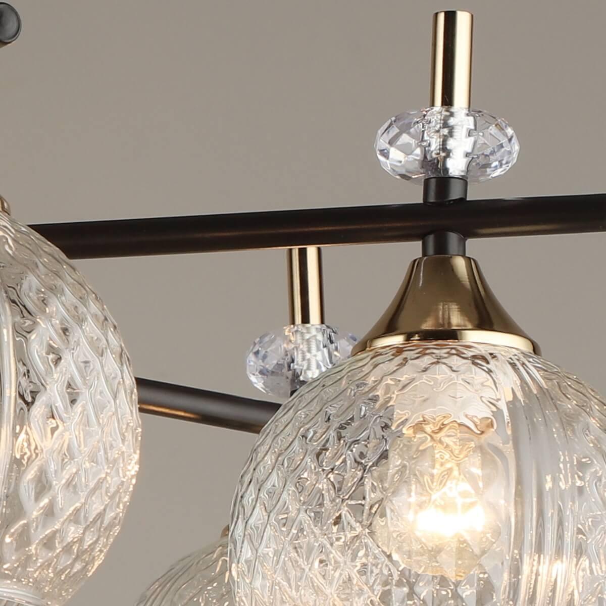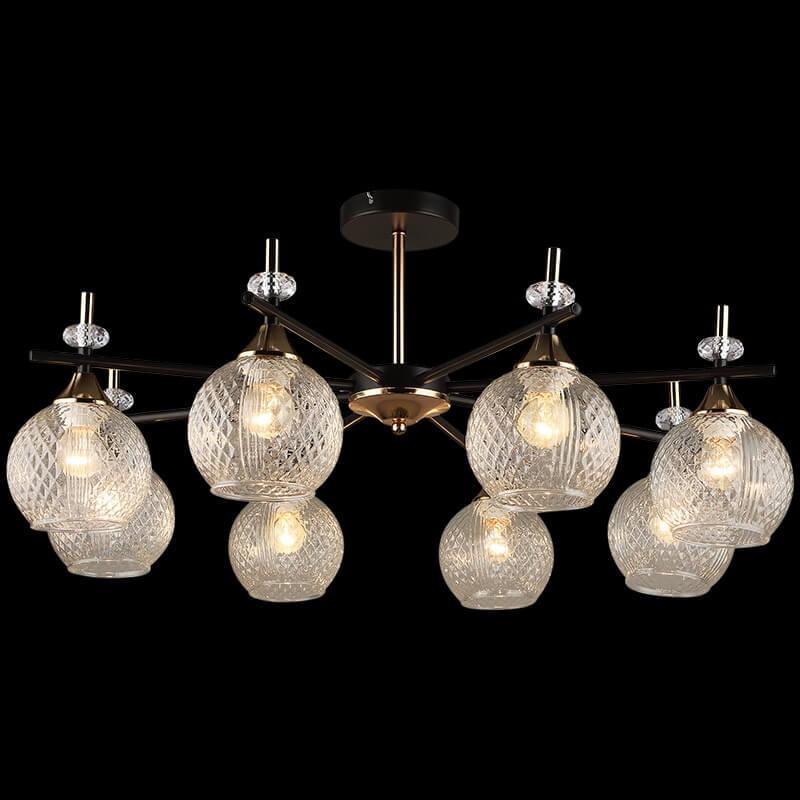 Производитель светильника рекомендует для устройства 8 ламп накаливания с цоколем E27 и мощностью 60 W, что позволит осветить помещение площадью 64 кв.м. Габариты изделия: высота – 345 мм, диаметр – мм.