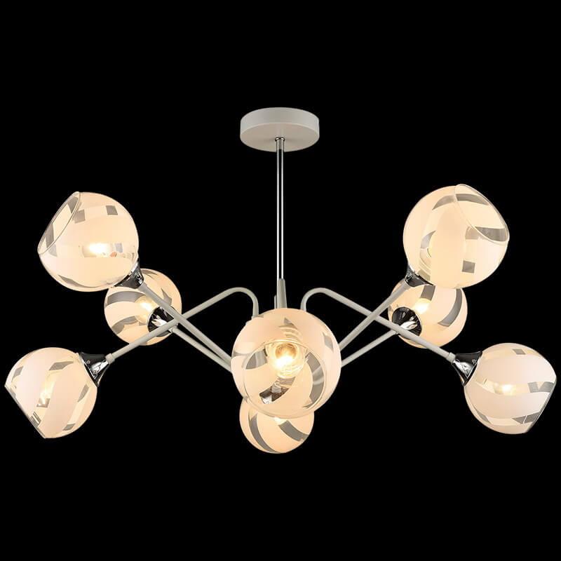 Производитель светильника рекомендует для устройства 8 ламп накаливания с цоколем E27 и мощностью 60 W, что позволит осветить помещение площадью 64 кв.м. Габариты изделия: высота – 475 мм, диаметр – мм.