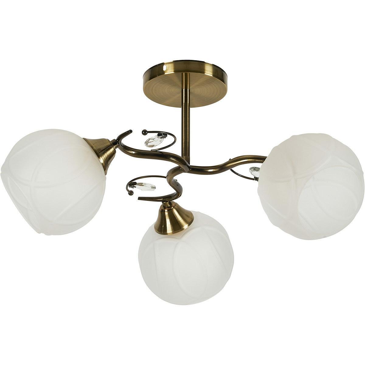 Производитель светильника рекомендует для устройства 3 лампы накаливания с цоколем E27 и мощностью 60 W, что позволит осветить помещение площадью 18 кв.м. Габариты изделия: высота – 270 мм, диаметр – мм.