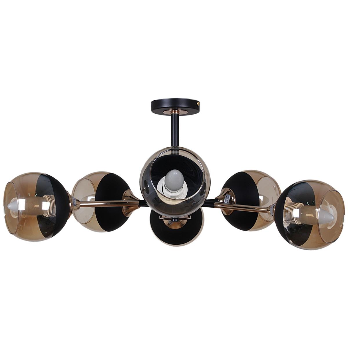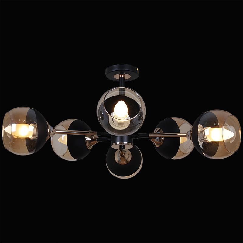 Производитель светильника рекомендует для устройства 6 ламп накаливания с цоколем E27 и мощностью 60 W, что позволит осветить помещение площадью 48 кв.м. Габариты изделия: высота – 280 мм, диаметр – мм.