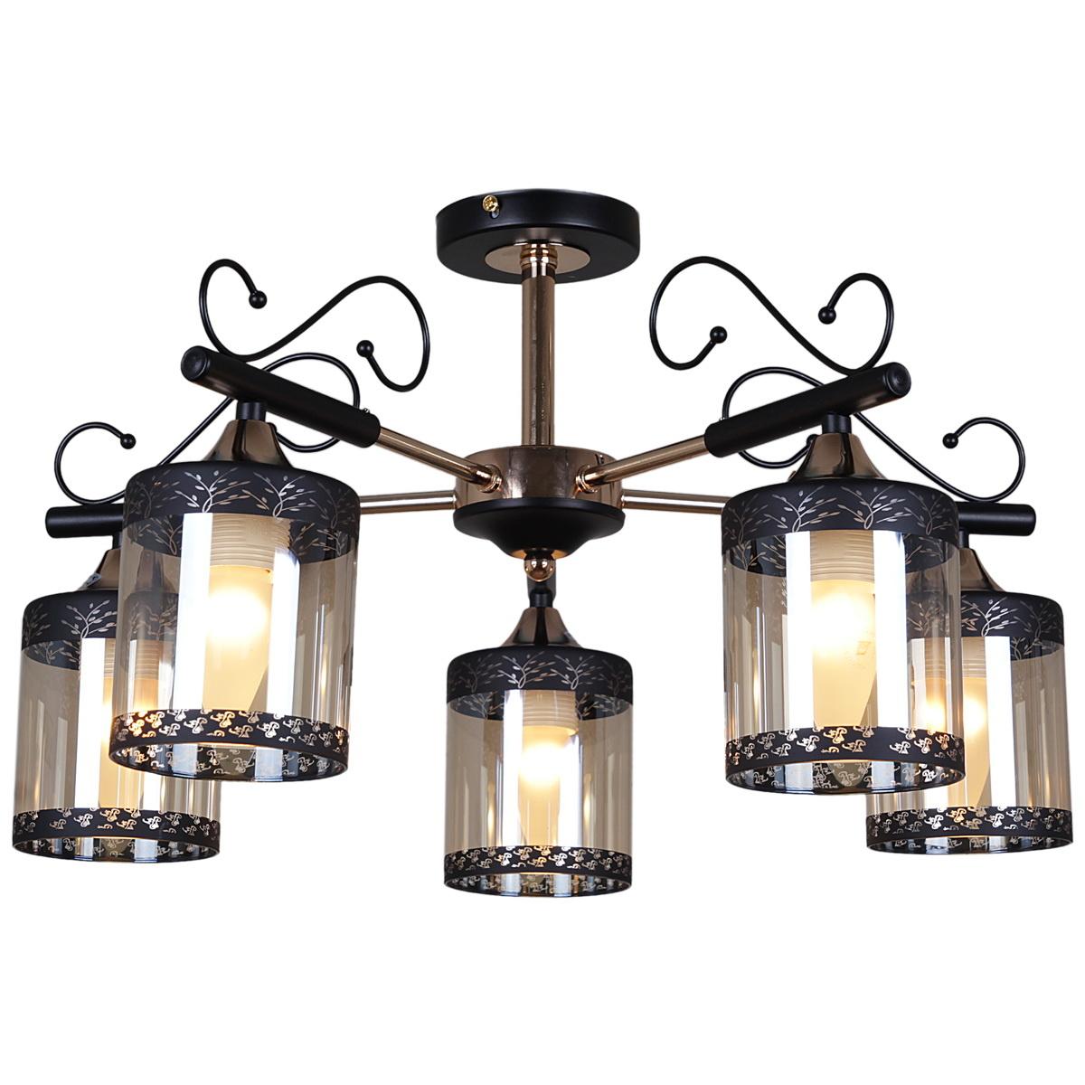 Производитель светильника рекомендует для устройства 5 ламп накаливания с цоколем E27 и мощностью 60 W, что позволит осветить помещение площадью 40 кв.м. Габариты изделия: высота – 280 мм, диаметр – мм.