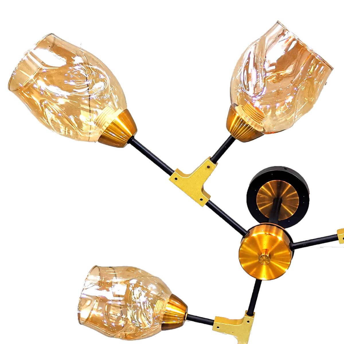 Производитель светильника рекомендует для устройства 6 ламп накаливания с цоколем E27 и мощностью 60 W, что позволит осветить помещение площадью 48 кв.м. Габариты изделия: высота – 180 мм, диаметр – мм.