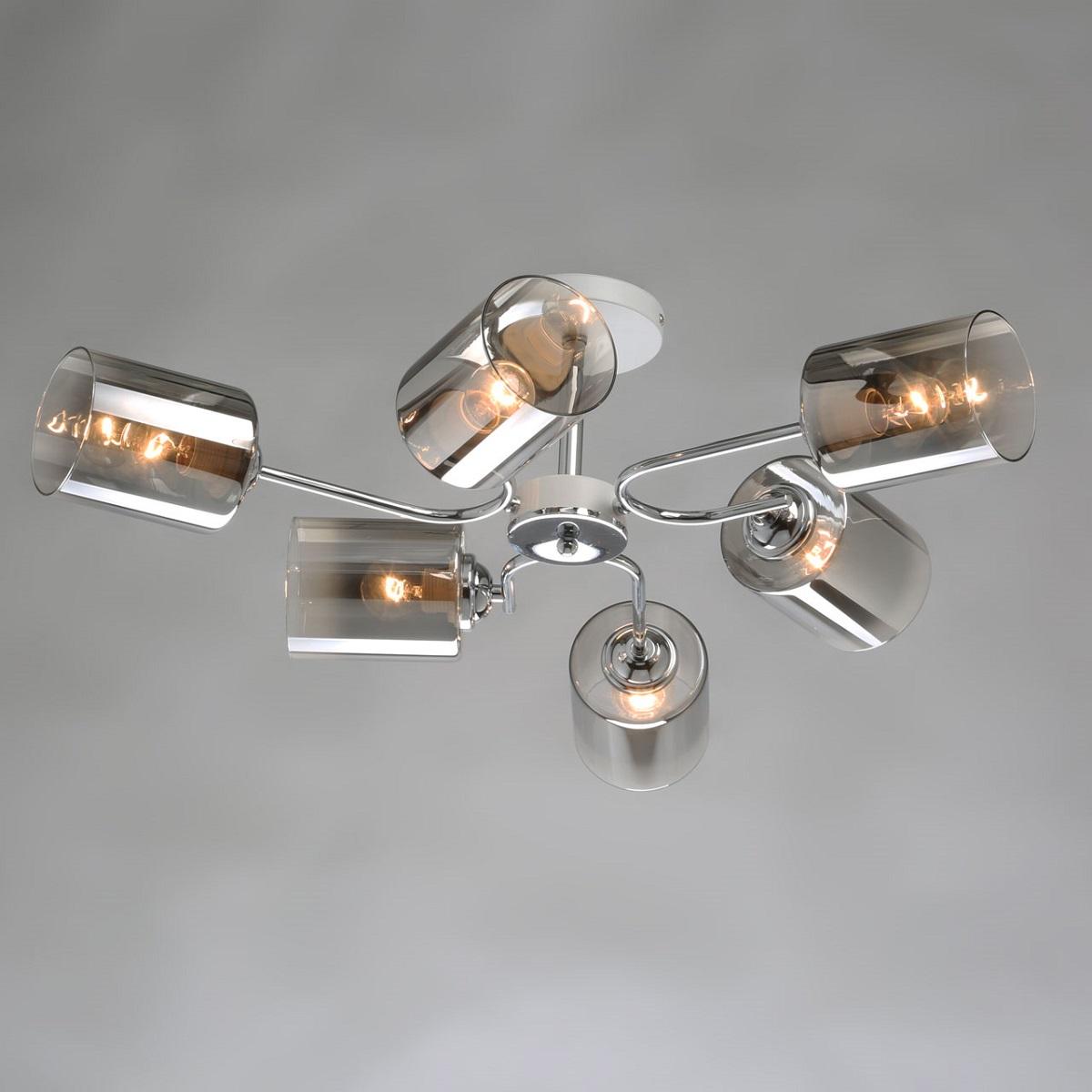 Потолочная люстра De Markt City Акцент 680011906 от бренда из коллекции Акцент будет удачно смотреться в гостиной в . Светильник выполнен из стекла с плафонами в форме серого цвета.