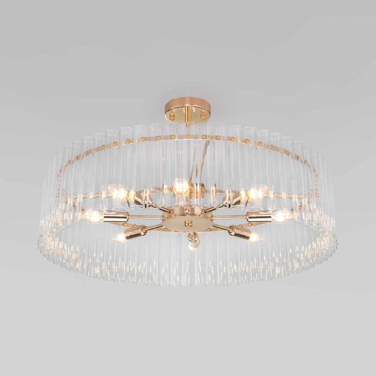 Потолочная люстра Bogates Flamel 373/8 от бренда из коллекции Flamel будет удачно смотреться в гостиной в современном стиле. Светильник выполнен из стекла с плафонами в форме прозрачного цвета.
