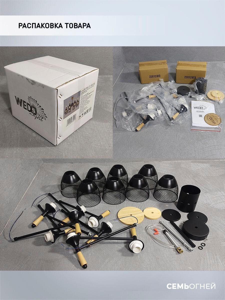 Производитель светильника рекомендует для устройства 8 ламп накаливания с цоколем E27 и мощностью 60 W, что позволит осветить помещение площадью 24 кв.м. Габариты изделия: высота – 385 мм, диаметр – 695 мм.