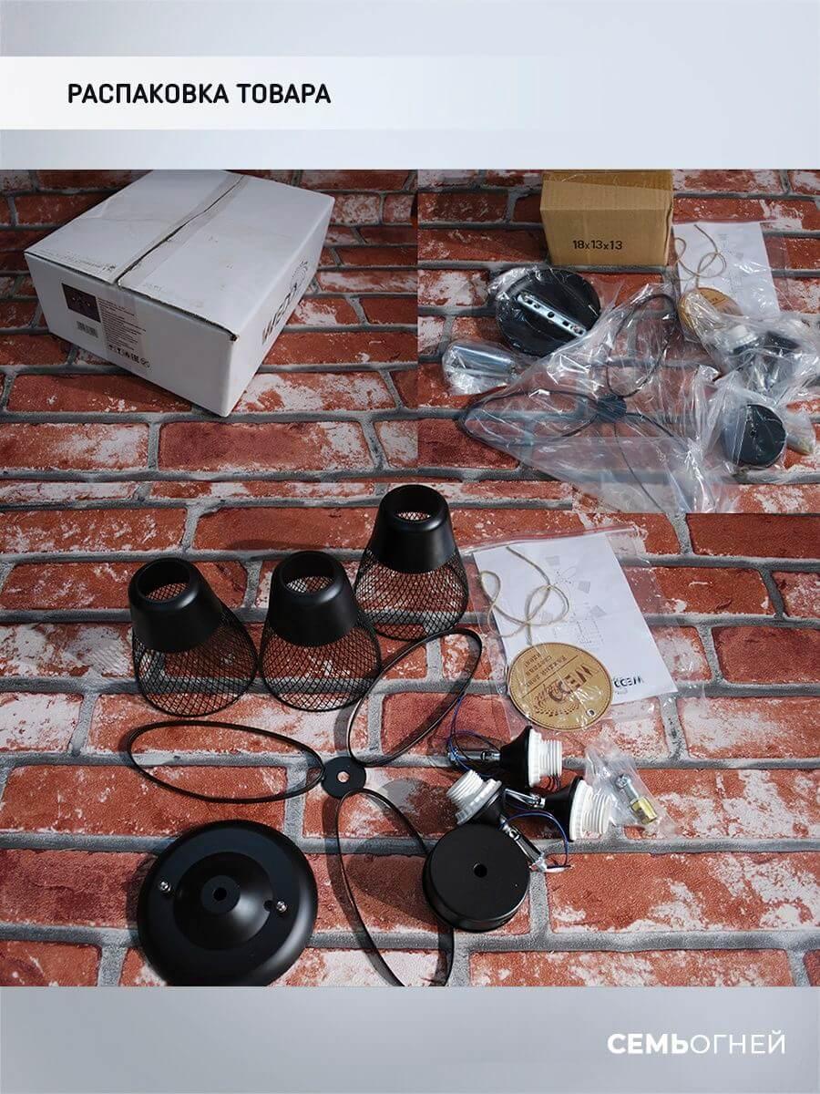Производитель светильника рекомендует для устройства 3 лампы накаливания с цоколем E27 и мощностью 60 W, что позволит осветить помещение площадью 9 кв.м. Габариты изделия: высота – 250 мм, диаметр – 480 мм.