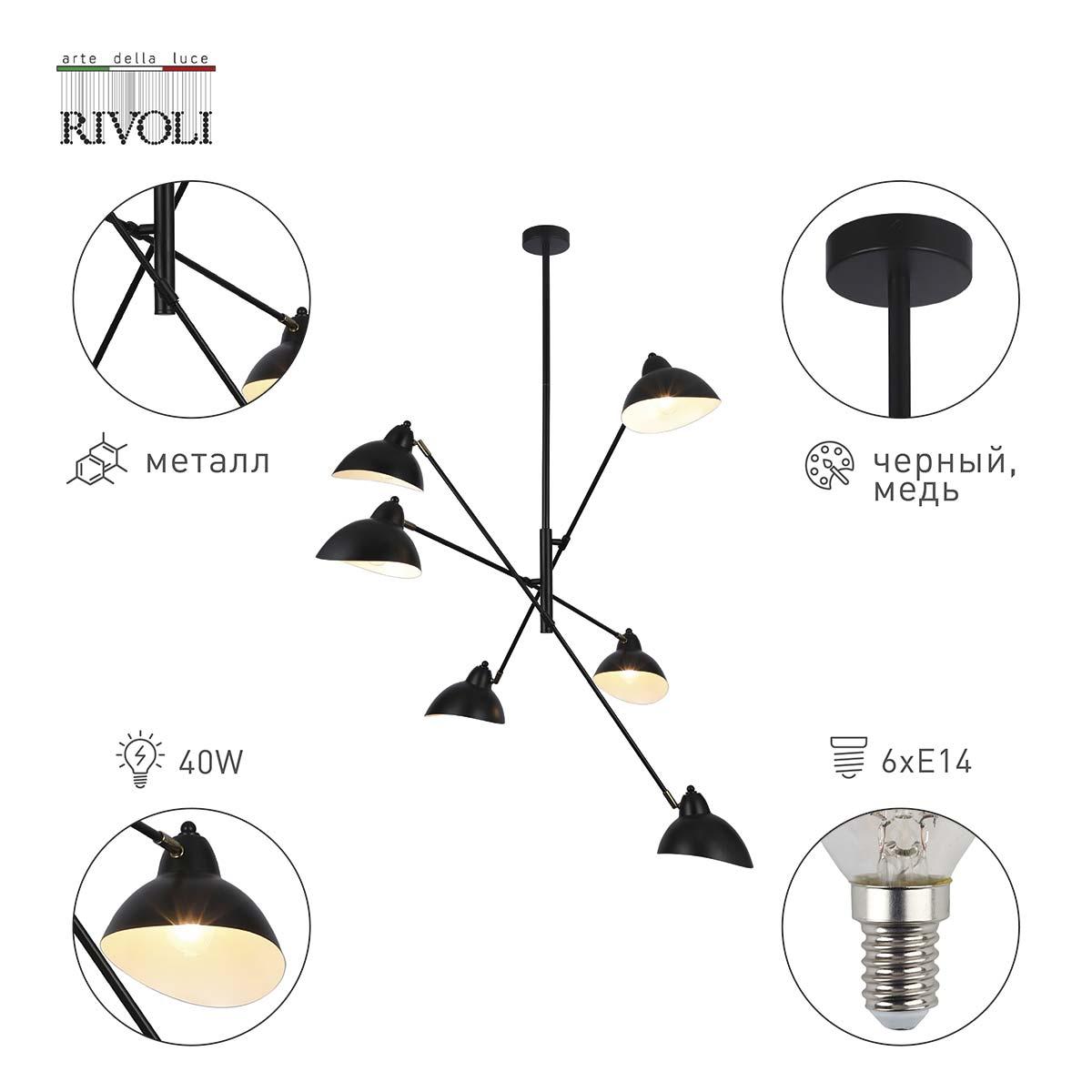 Подвесная люстра Rivoli Adelaide 4103-306 Б0055676 от Китайского бренда из коллекции Adelaide будет удачно смотреться в дизайнерском стиле. Светильник выполнен из металла с плафонами в форме черного цвета.