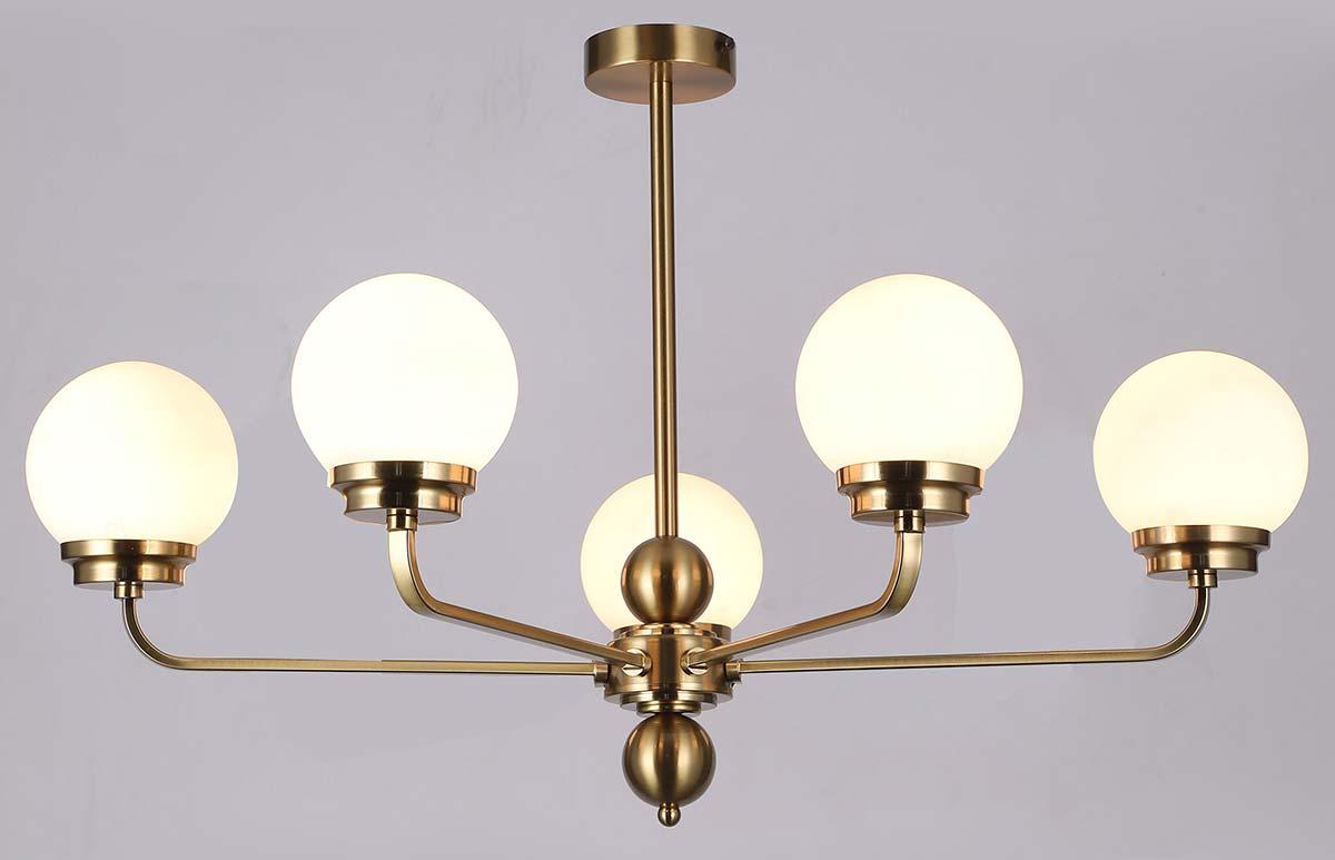 Производитель светильника рекомендует для устройства 5 ламп накаливания с цоколем E27 и мощностью 40 W, что позволит осветить помещение площадью 15 кв.м. Габариты изделия: высота – 513 мм, диаметр – мм.
