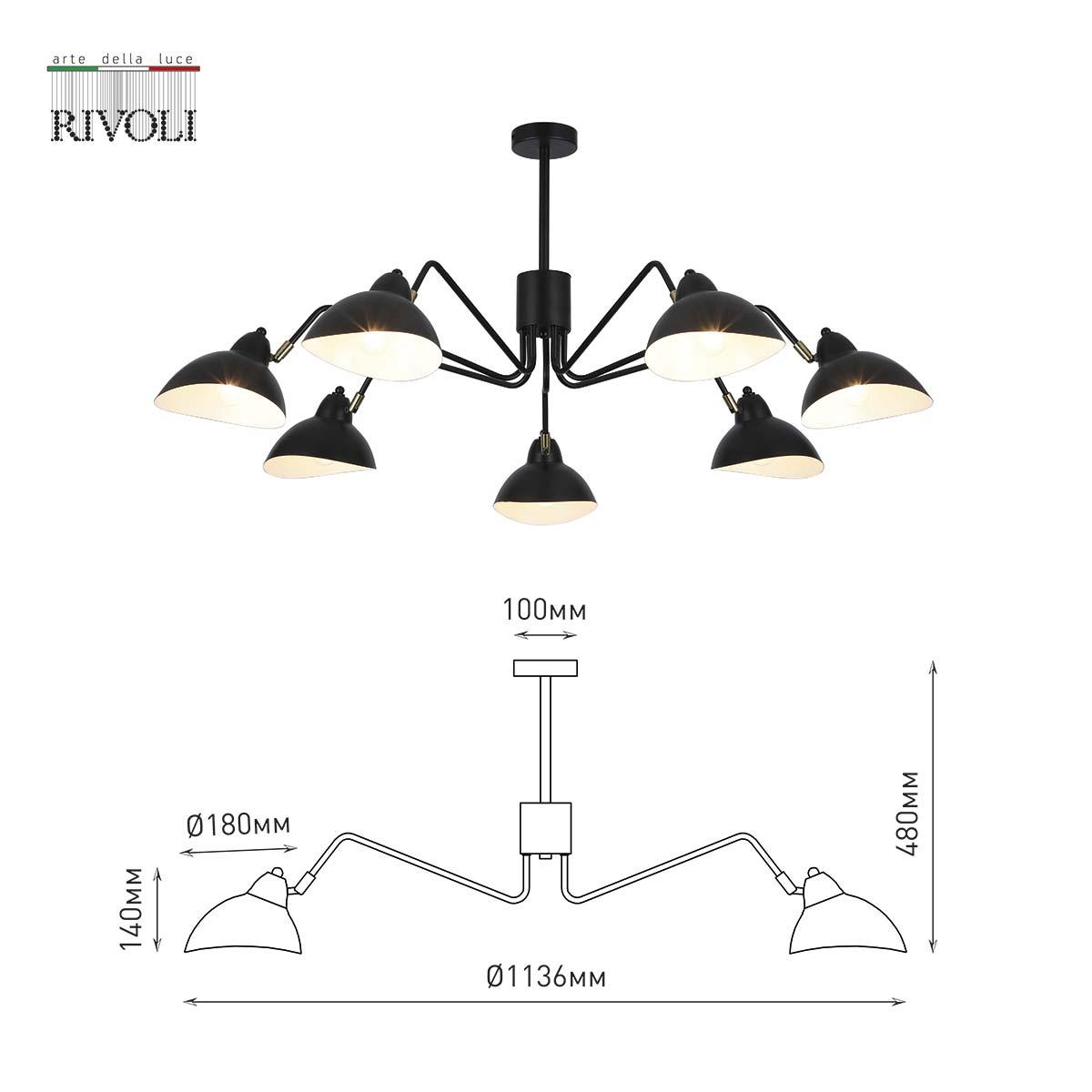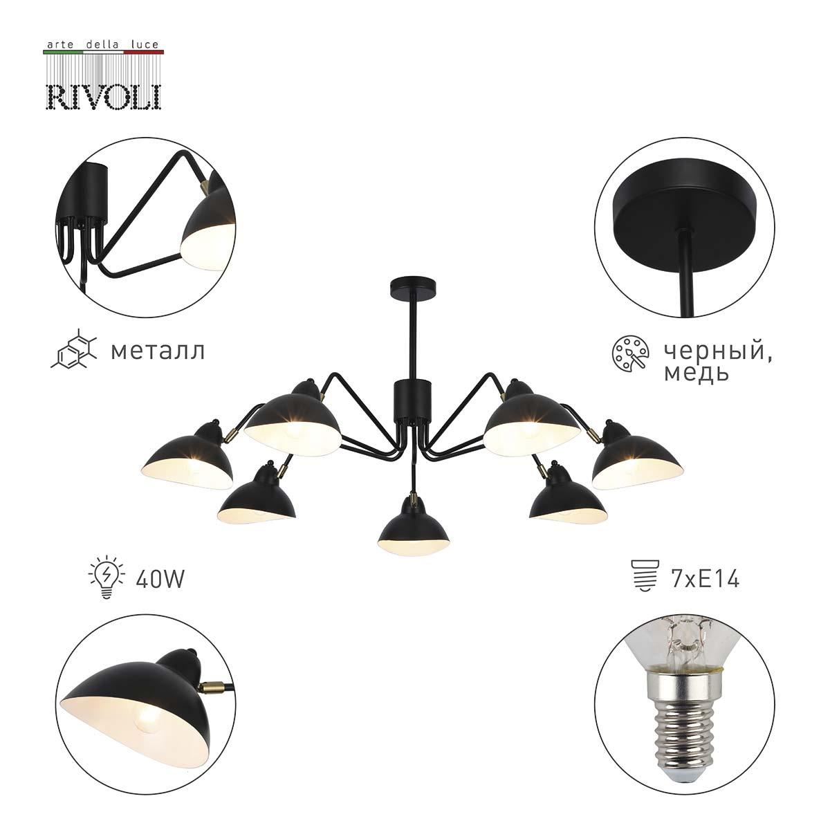 Подвесная люстра Rivoli Geraldine 4101-307 Б0055673 от бренда из коллекции будет удачно смотреться в дизайнерском стиле. Светильник выполнен из металла с плафонами в форме черного цвета.
