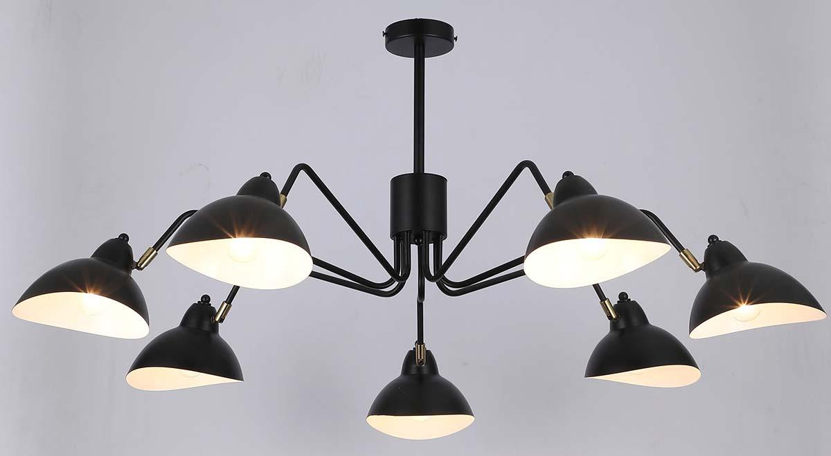 Производитель светильника рекомендует для устройства 7 ламп накаливания с цоколем E14 и мощностью 40 W, что позволит осветить помещение площадью 21 кв.м. Габариты изделия: высота – 480 мм, диаметр – мм.