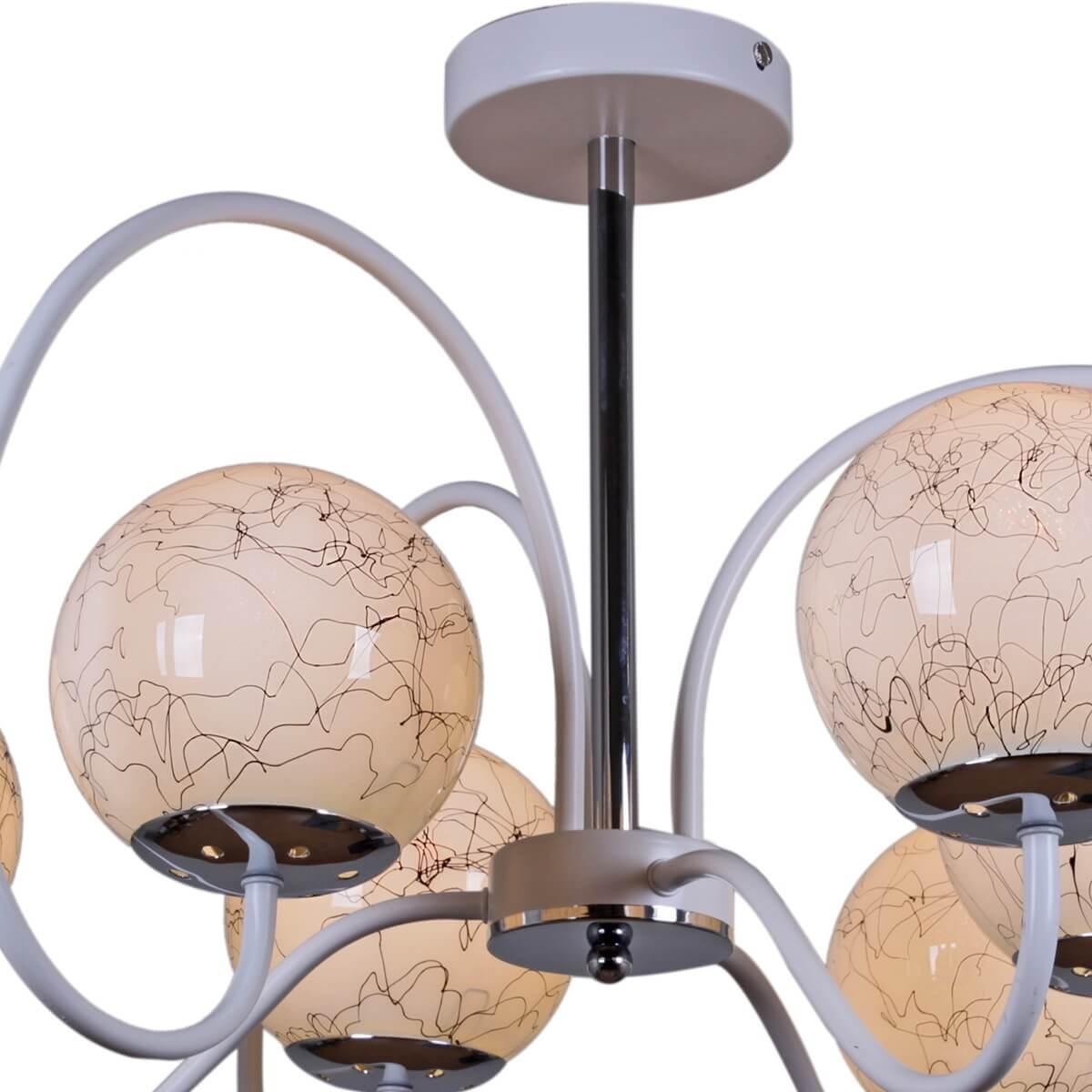 Производитель светильника рекомендует для устройства 6 ламп накаливания с цоколем E27 и мощностью 60 W, что позволит осветить помещение площадью 24 кв.м. Габариты изделия: высота – 395 мм, диаметр – мм.
