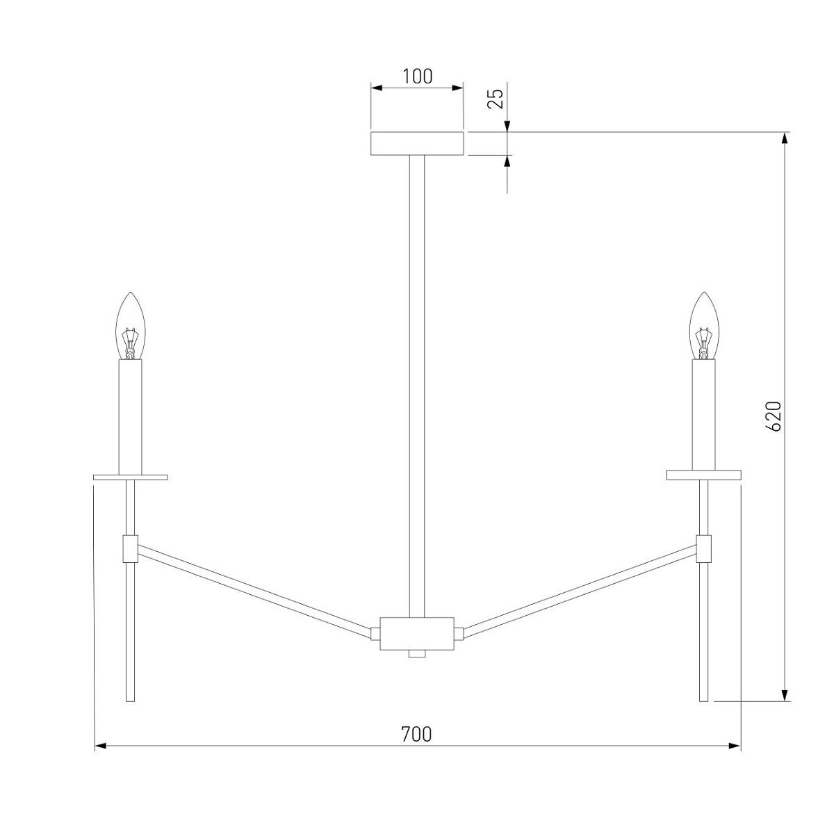 Производитель светильника рекомендует для устройства 6 ламп накаливания с цоколем E14 и мощностью 60 W, что позволит осветить помещение площадью 11 кв.м. Габариты изделия: высота – 620 мм, диаметр – мм.