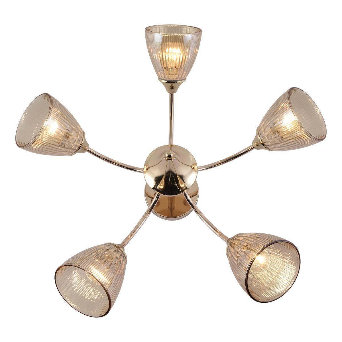 Потолочная люстра Escada Amelia 1129/5P от Китайского бренда из коллекции Amelia будет удачно смотреться в кухне в стиле модерн. Светильник выполнен из стекла с плафонами в форме .