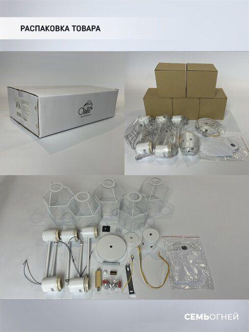 Производитель светильника рекомендует для устройства 5 ламп накаливания с цоколем E27 и мощностью 60 W, что позволит осветить помещение площадью 15 кв.м. Габариты изделия: высота – 280 мм, диаметр – 580 мм.