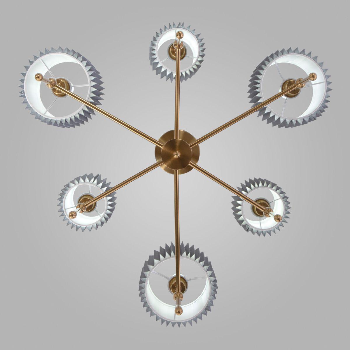 Производитель светильника рекомендует для устройства 6 ламп накаливания с цоколем E14 и мощностью 40 W, что позволит осветить помещение площадью 11 кв.м. Габариты изделия: высота – 640 мм, диаметр – 740 мм.