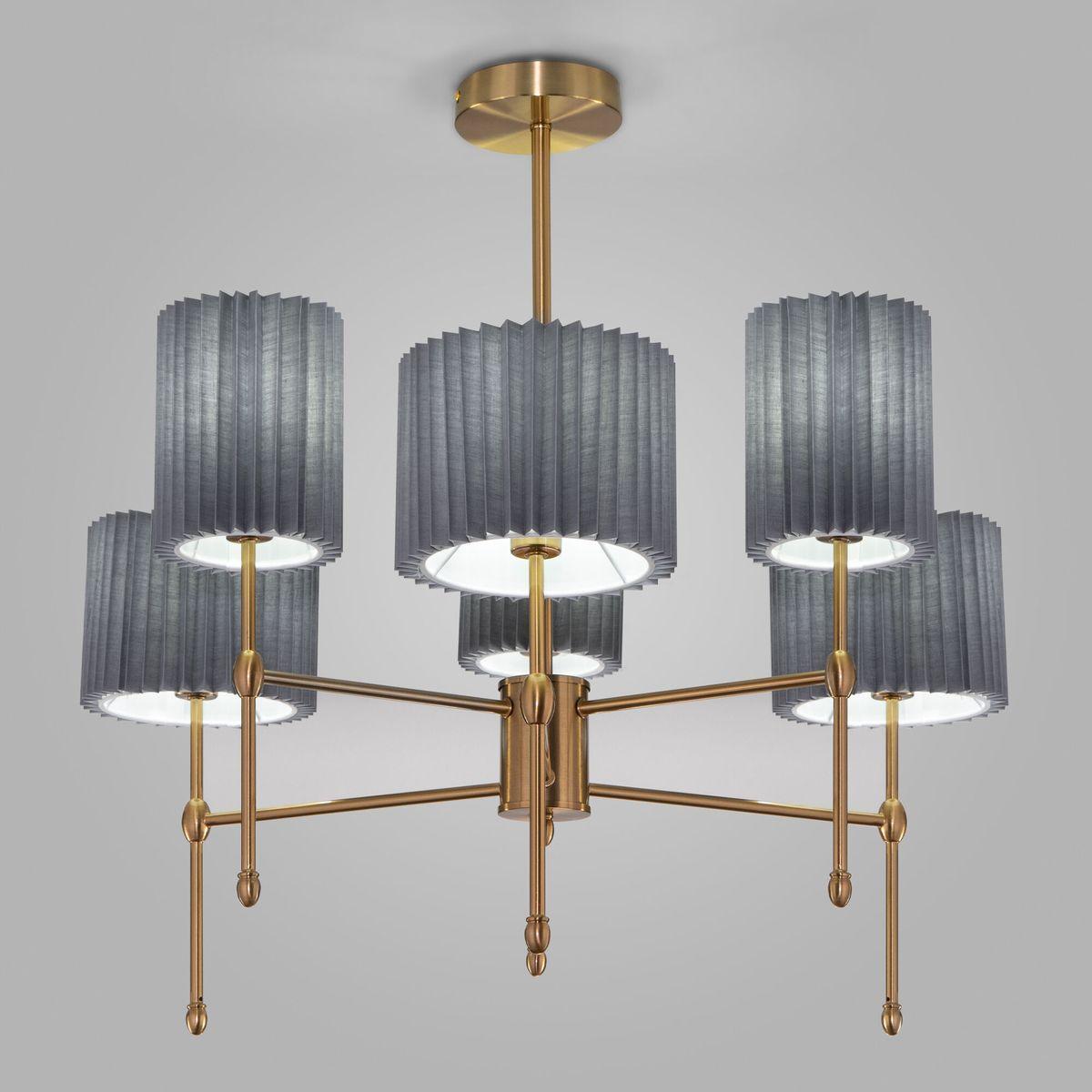 Подвесная люстра Eurosvet Notturno 60162/6 латунь от Китайского бренда из коллекции Notturno будет удачно смотреться в спальни в стиле модерн. Светильник выполнен из ткани с плафонами в форме черного цвета.