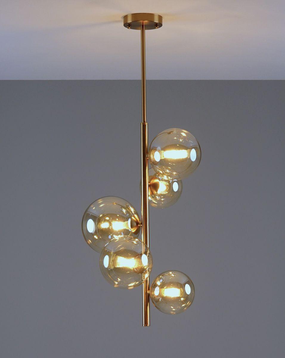 Подвесная люстра Moderli Molly V10788-5P от Китайского бренда из коллекции Renny будет удачно смотреться в стиле модерн. Светильник выполнен из стекла с плафонами в форме янтарного цвета.