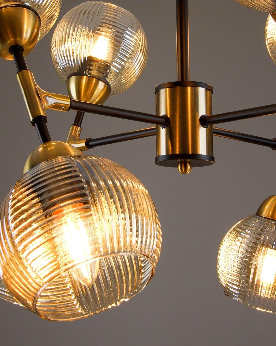 Производитель светильника рекомендует для устройства 8 ламп накаливания с цоколем E27 и мощностью 40 W, что позволит осветить помещение площадью 18 кв.м. Габариты изделия: высота – 660 мм, диаметр – 530 мм.