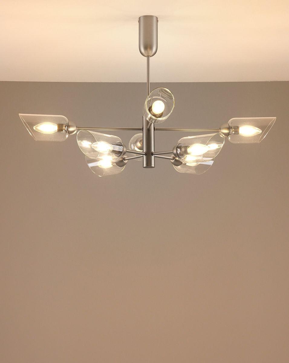 Производитель светильника рекомендует для устройства 8 ламп накаливания с цоколем E14 и мощностью 40 W, что позволит осветить помещение площадью 20 кв.м. Габариты изделия: высота – 460 мм, диаметр – 800 мм.