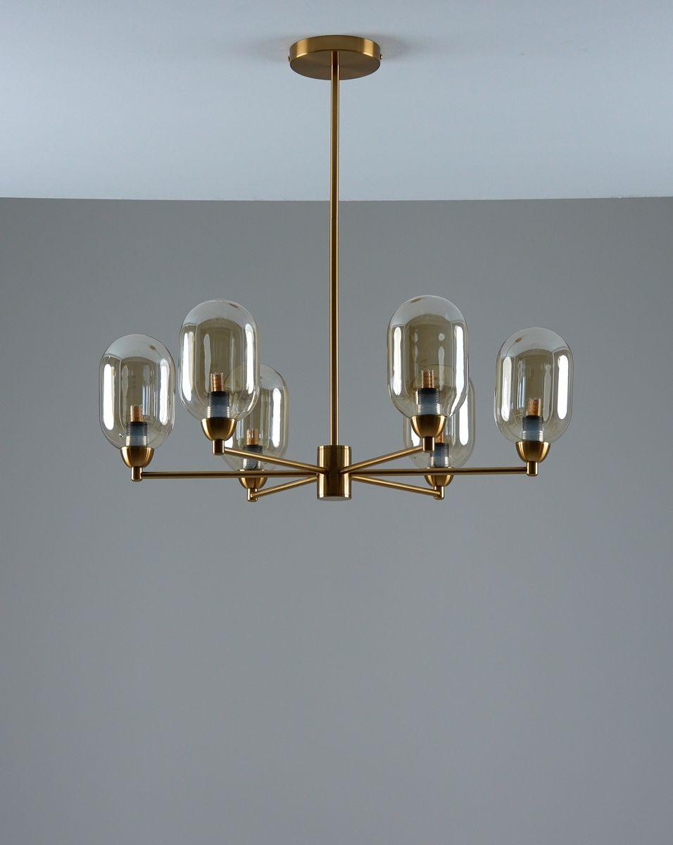 Производитель светильника рекомендует для устройства 6 ламп накаливания с цоколем E14 и мощностью 5 W, что позволит осветить помещение площадью 8 кв.м. Габариты изделия: высота – 590 мм, диаметр – 620 мм.
