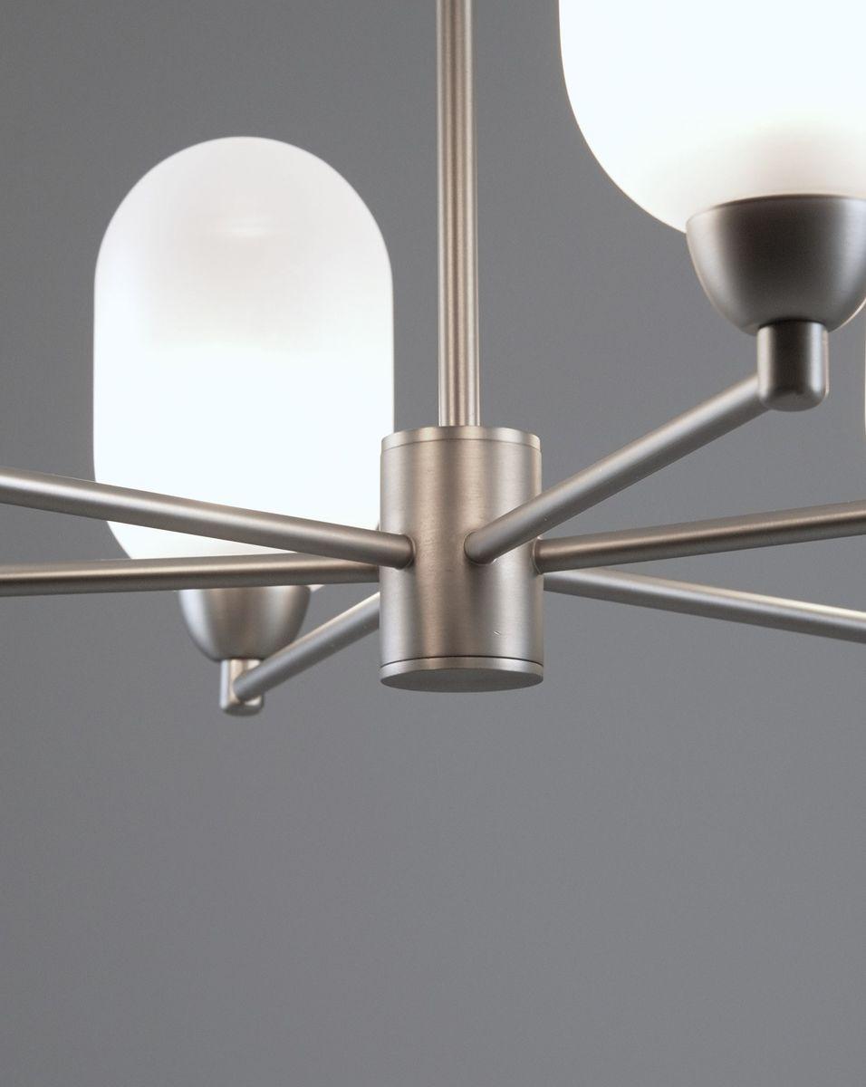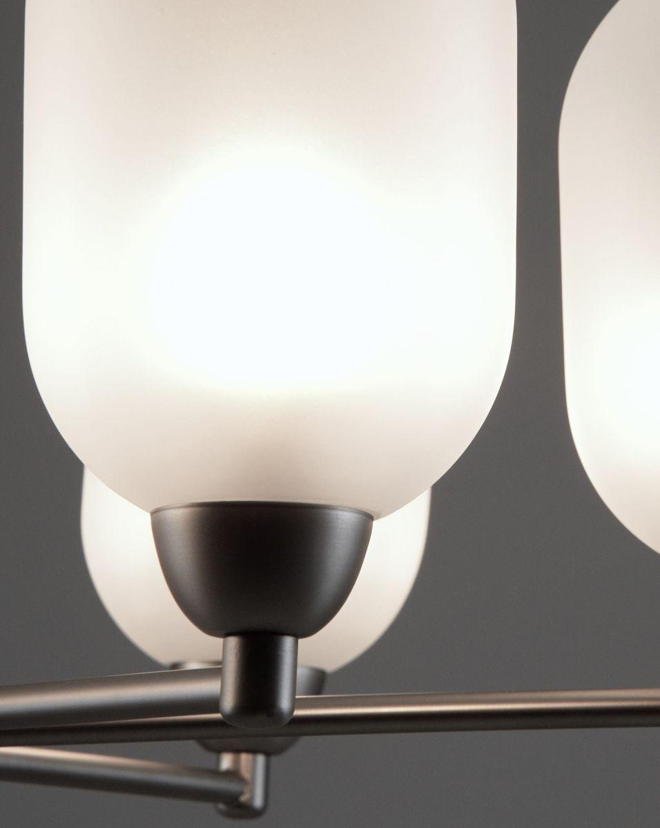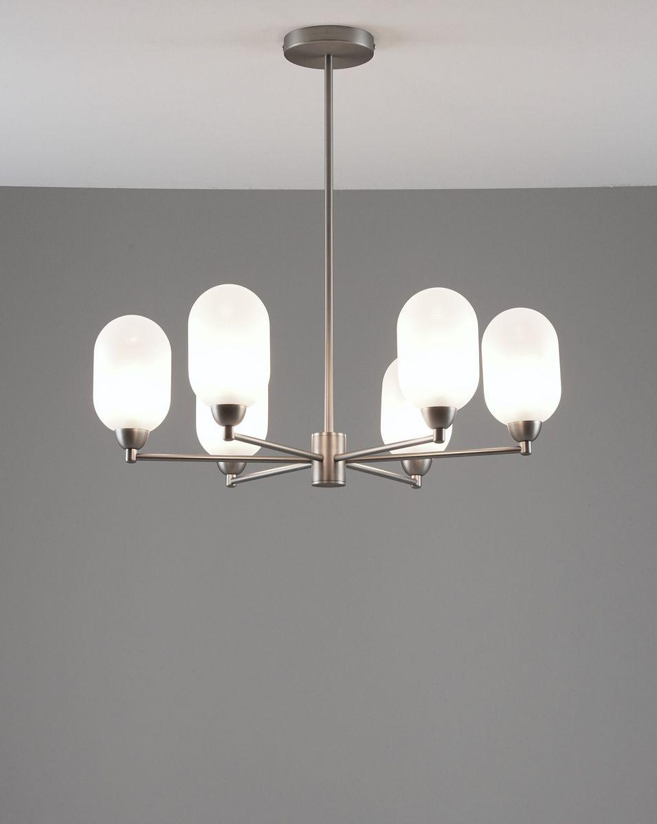 Производитель светильника рекомендует для устройства 6 ламп накаливания с цоколем E14 и мощностью 5 W, что позволит осветить помещение площадью 8 кв.м. Габариты изделия: высота – 590 мм, диаметр – 620 мм.