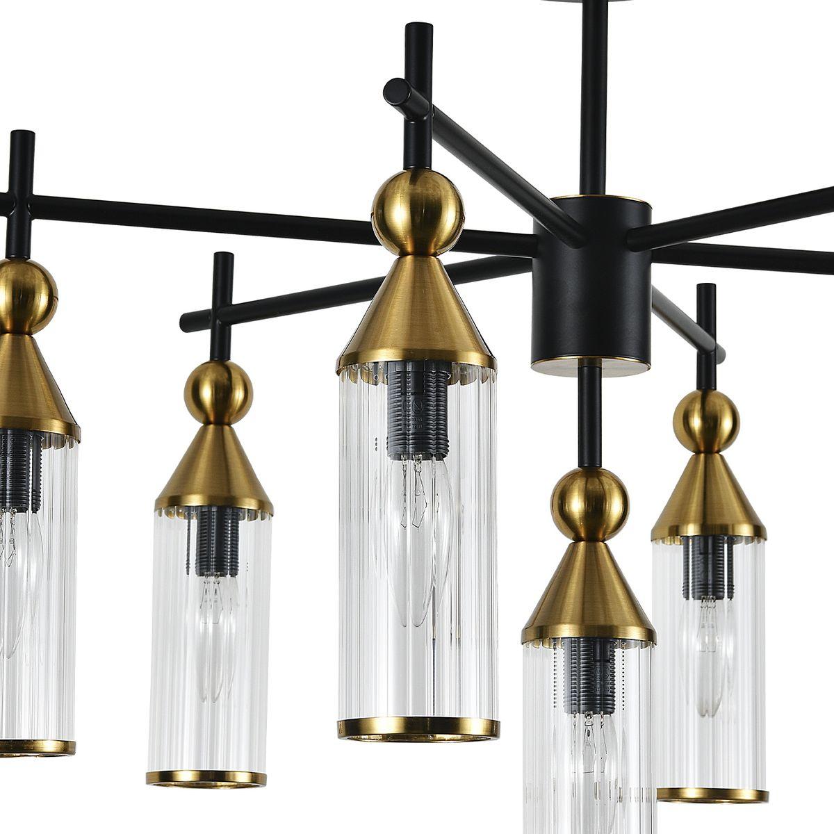 Подвесная люстра Indigo Torazzo 13037/7R Black V000528 от Китайского бренда из коллекции Torazzo будет удачно смотреться в стиле модерн. Светильник выполнен из стекла с плафонами в форме .