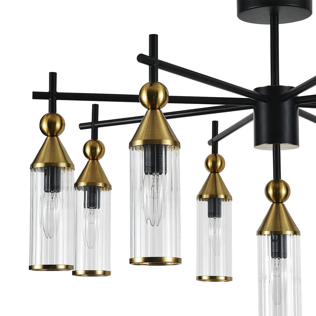 Подвесная люстра Indigo Torazzo 13037/9R Black V000529 от Китайского бренда из коллекции Torazzo будет удачно смотреться в стиле модерн. Светильник выполнен из стекла с плафонами в форме .