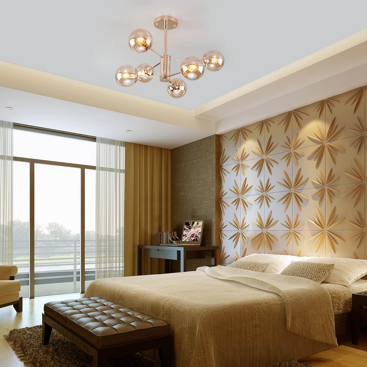 Потолочная люстра Eurosvet Ascot 30166/6 золото от Китайского бренда из коллекции Ascot будет удачно смотреться в гостиной в современном стиле. Светильник выполнен из стекла с плафонами в форме янтарного цвета.