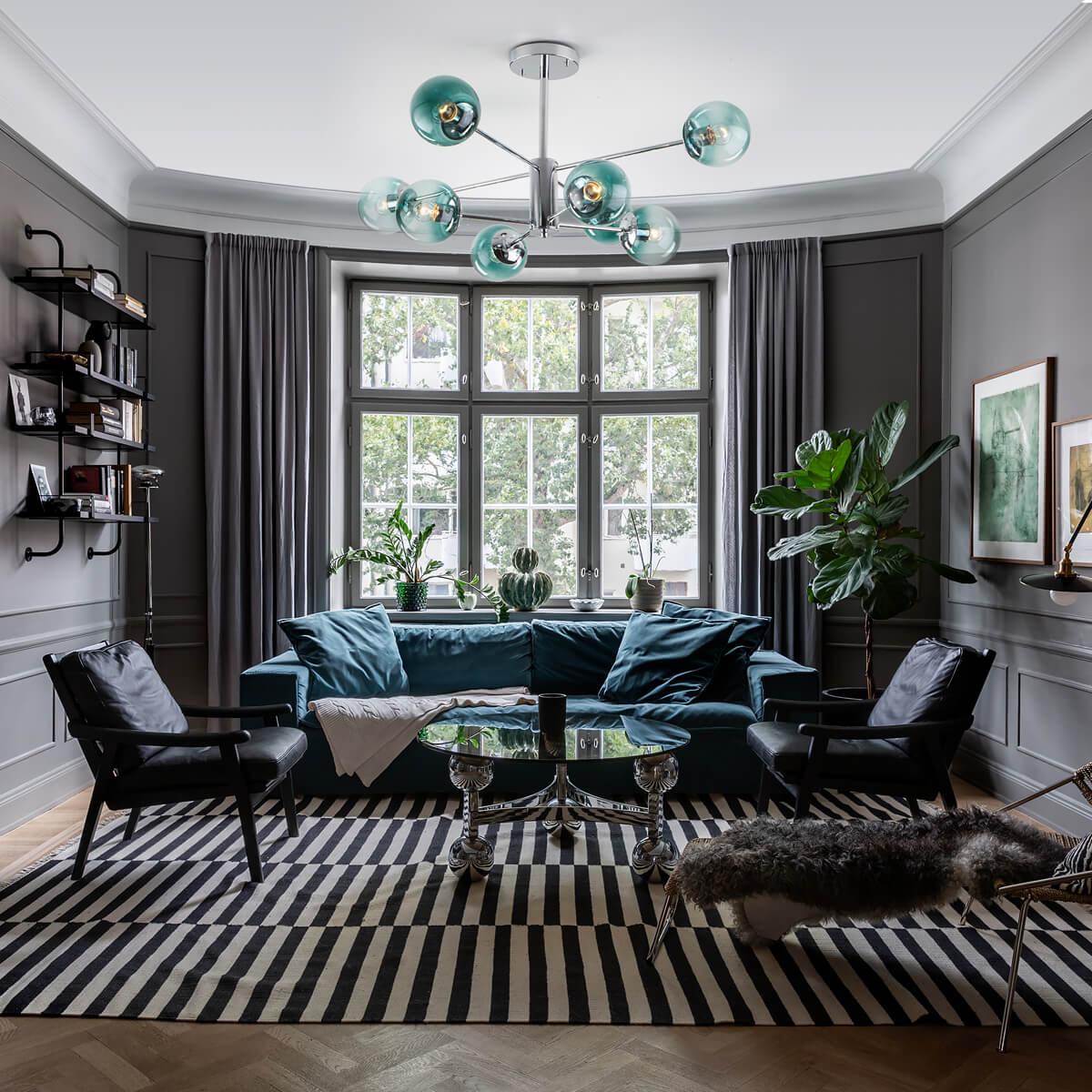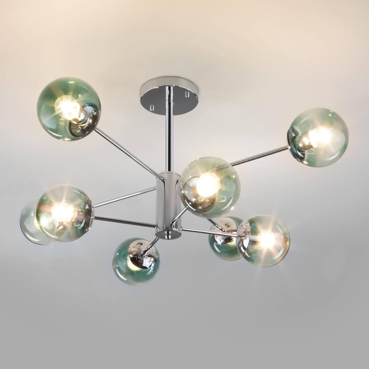 Потолочная люстра Eurosvet Ascot 30166/8 хром от Китайского бренда из коллекции Ascot будет удачно смотреться в гостиной в современном стиле. Светильник выполнен из стекла с плафонами в форме зеленого цвета.