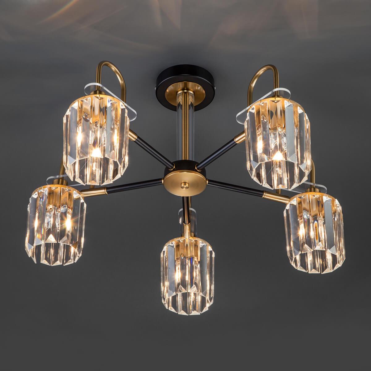 Потолочная люстра Eurosvet Tenia 70090/5 черный от Китайского бренда из коллекции Tenia будет удачно смотреться в гостиной в стиле модерн. Светильник выполнен из хрусталя с плафонами в форме прозрачного цвета.