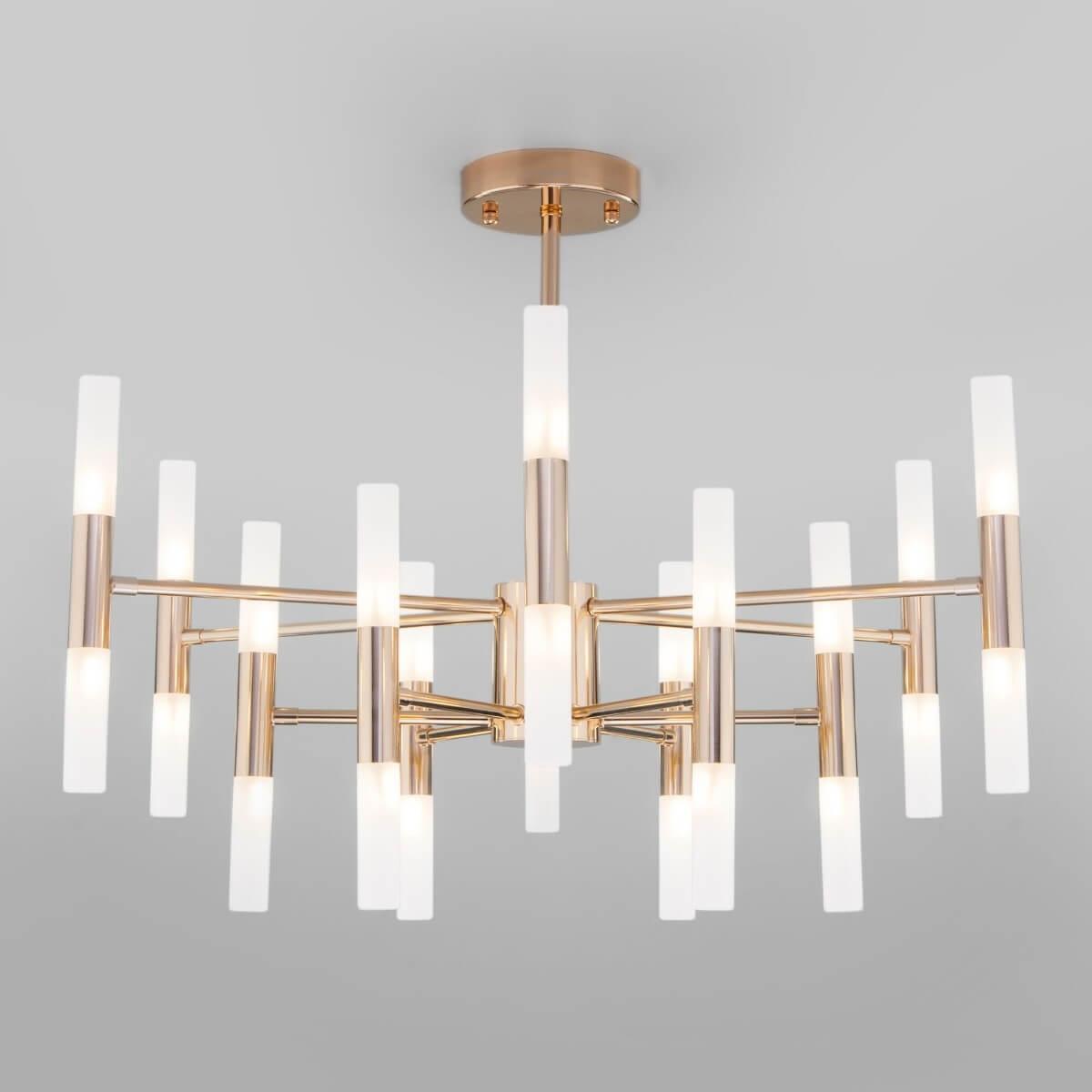 Производитель светильника рекомендует для устройства 24 светодиодных ламп с цоколем G4 и мощностью 3 W, что позволит осветить помещение площадью 36 кв.м. Габариты изделия: высота – 500 мм, диаметр – 600 мм.