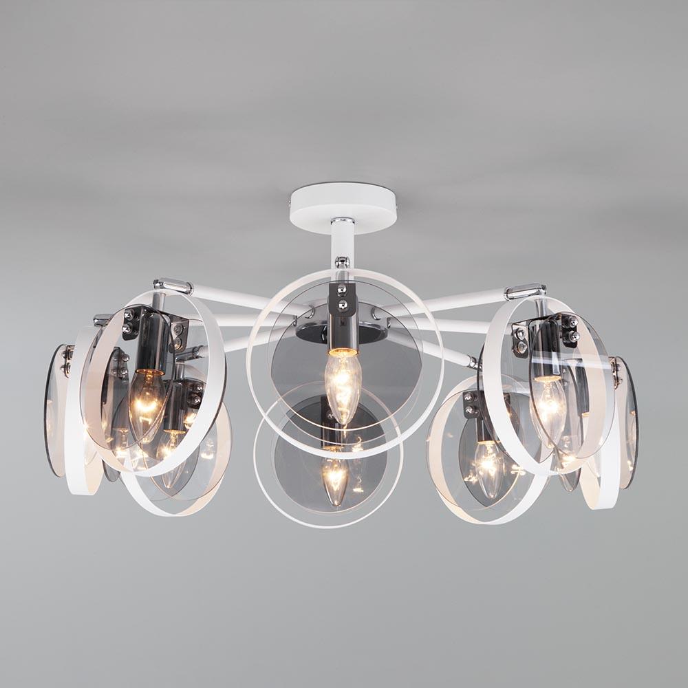 Потолочная люстра Eurosvet Gallo 70121/8 белый от Китайского бренда из коллекции Gallo будет удачно смотреться в гостиной в современном стиле. Светильник выполнен из стекла с плафонами в форме дымчатого цвета.