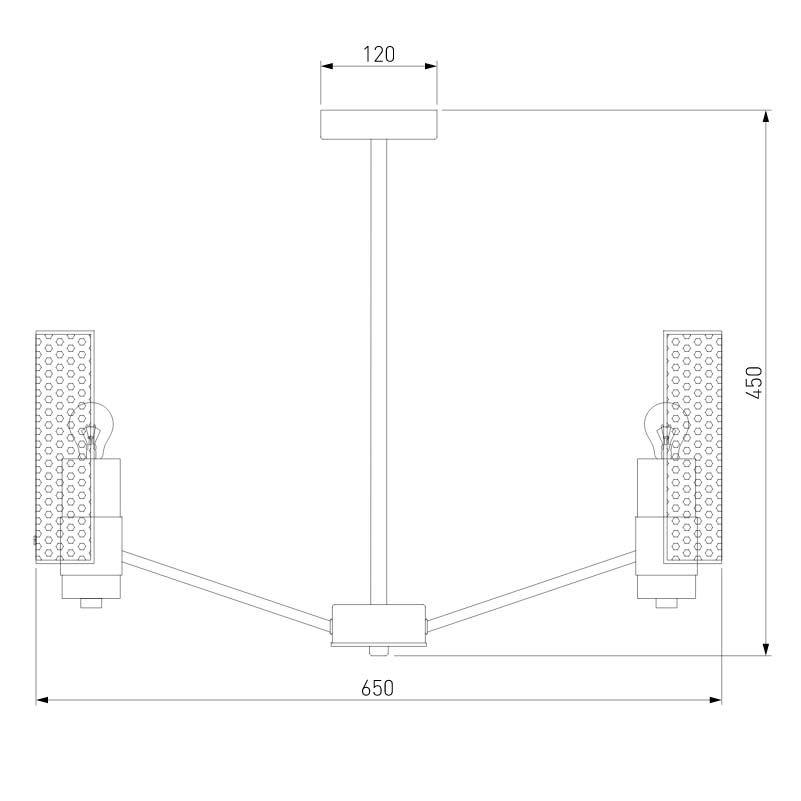 Производитель светильника рекомендует для устройства 6 ламп накаливания с цоколем E14 и мощностью 60 W, что позволит осветить помещение площадью 10 кв.м. Габариты изделия: высота – 450 мм, диаметр – 650 мм.