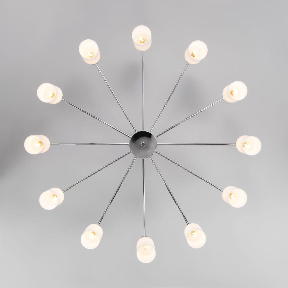 Потолочная люстра Eurosvet Vegga 70160/12 хром от Китайского бренда из коллекции Vegga будет удачно смотреться в гостиной в минималистическом стиле. Светильник выполнен из стекла с плафонами в форме белого цвета.