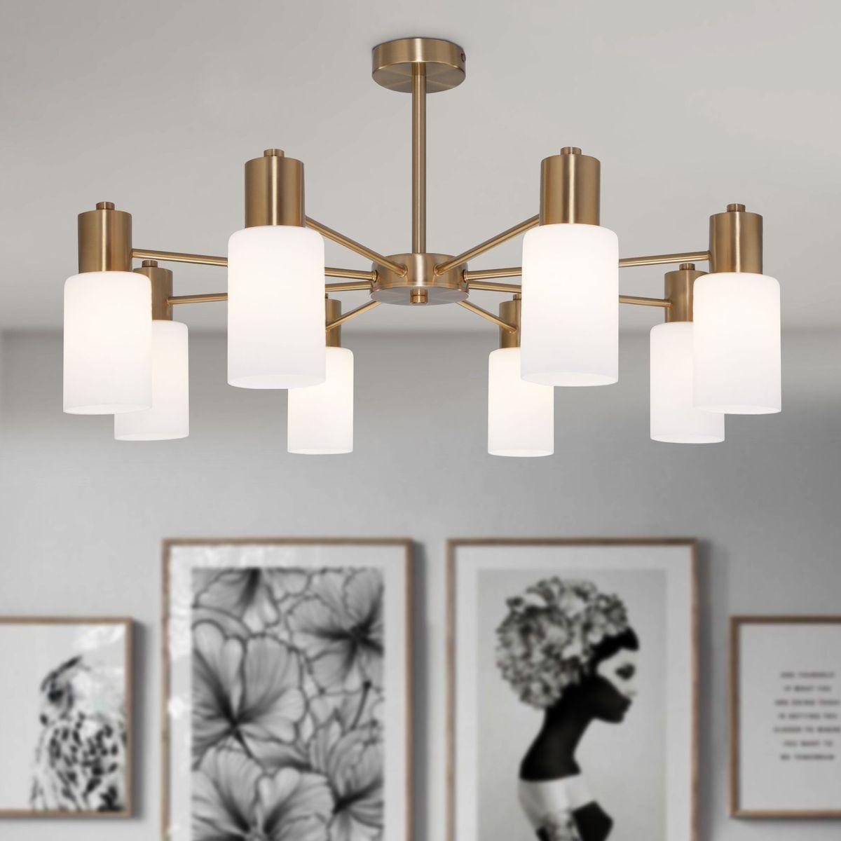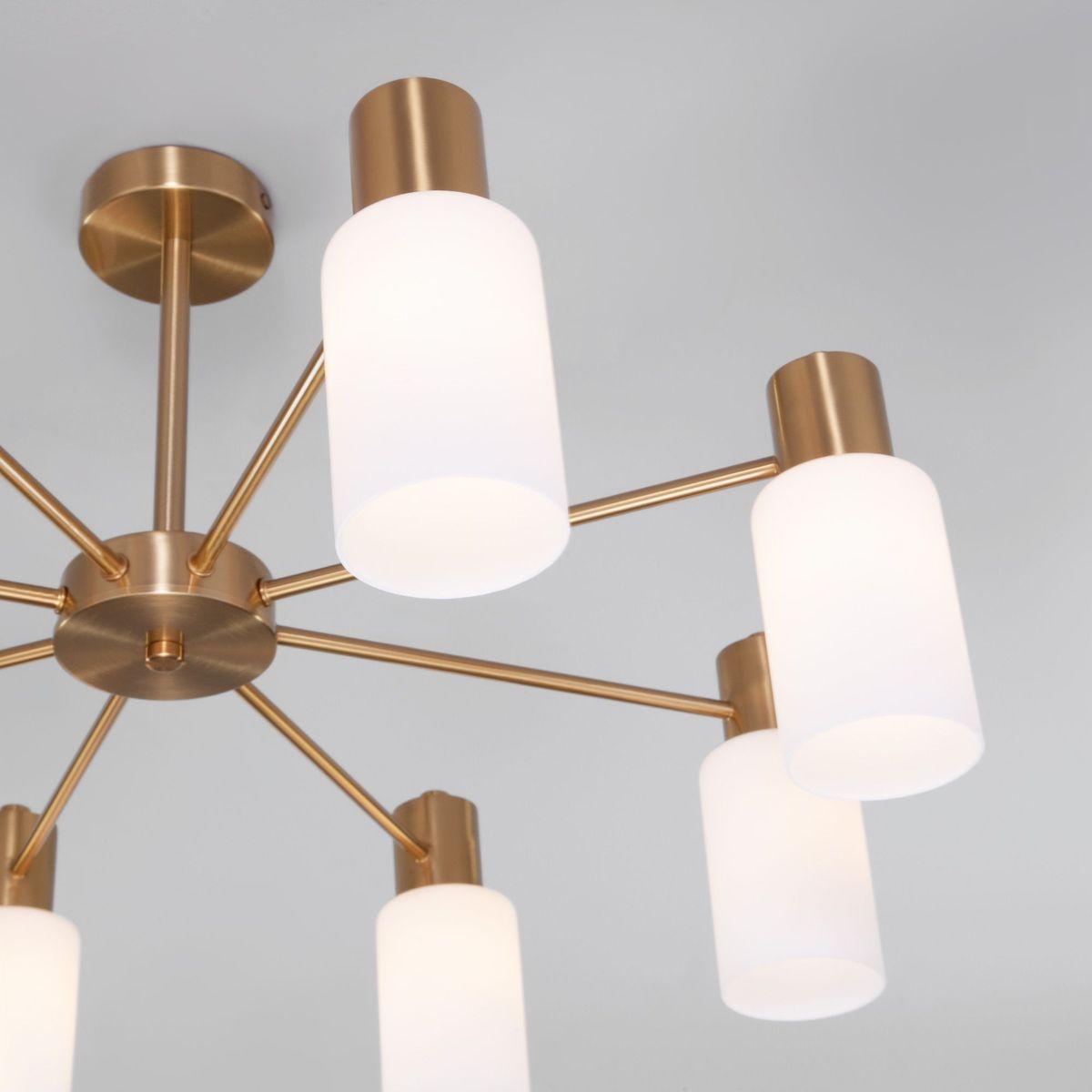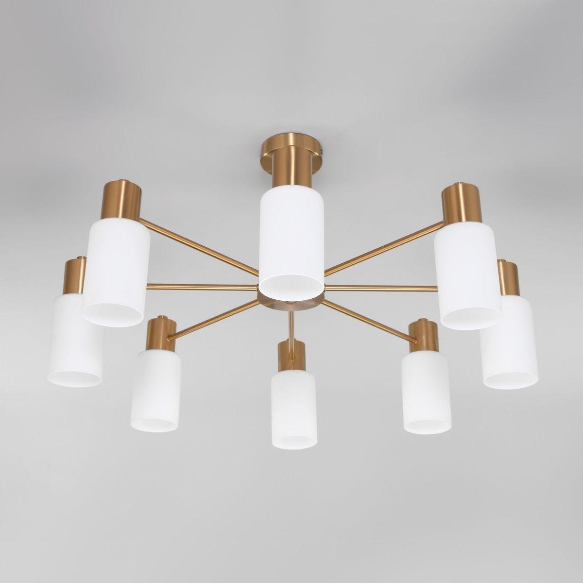 Потолочная люстра Eurosvet Vegga 70160/8 латунь от Китайского бренда из коллекции Vegga будет удачно смотреться в спальни в минималистическом стиле. Светильник выполнен из стекла с плафонами в форме белого цвета.