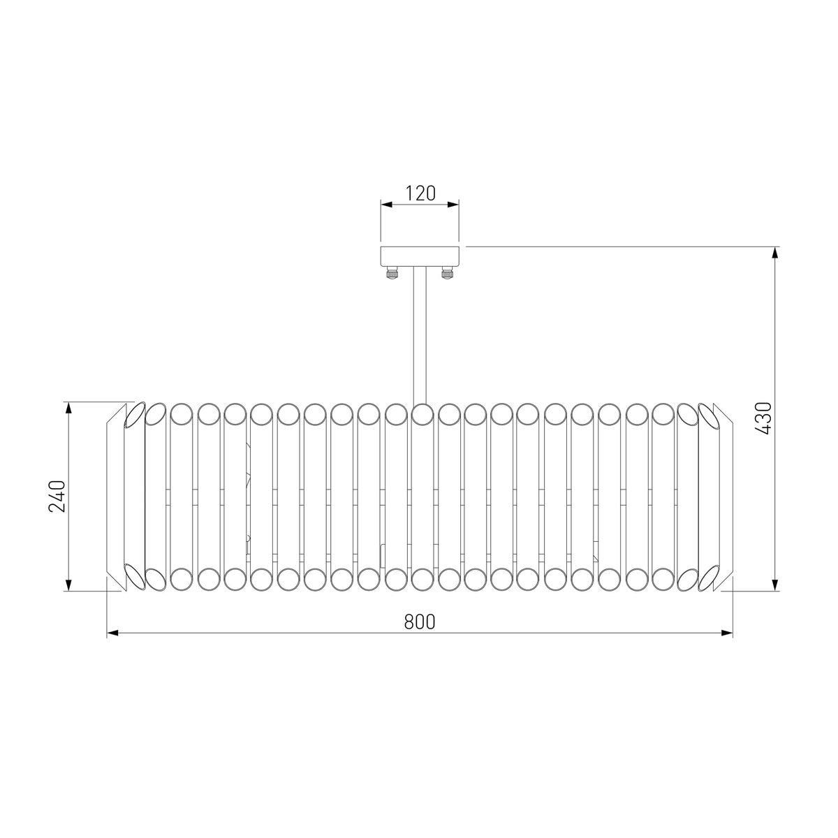 Производитель светильника рекомендует для устройства 8 ламп накаливания с цоколем E14 и мощностью 60 W, что позволит осветить помещение площадью 14 кв.м. Габариты изделия: высота – 430 мм, диаметр – 800 мм.