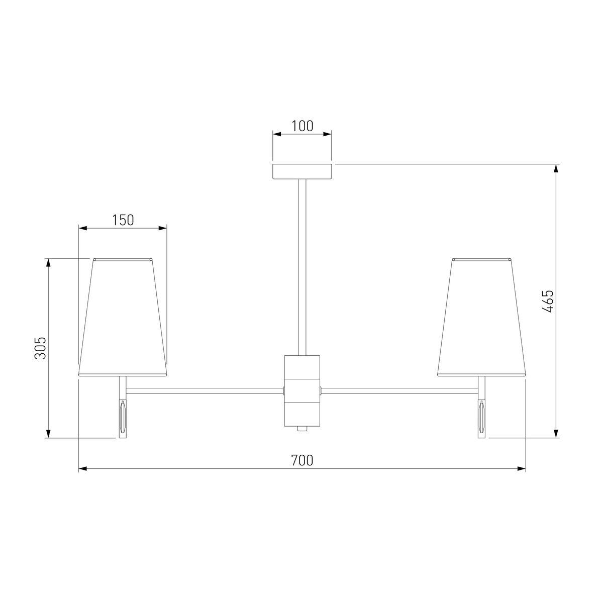 Производитель светильника рекомендует для устройства 6 ламп накаливания с цоколем E14 и мощностью 40 W, что позволит осветить помещение площадью 12 кв.м. Габариты изделия: высота – 465 мм, диаметр – 700 мм.