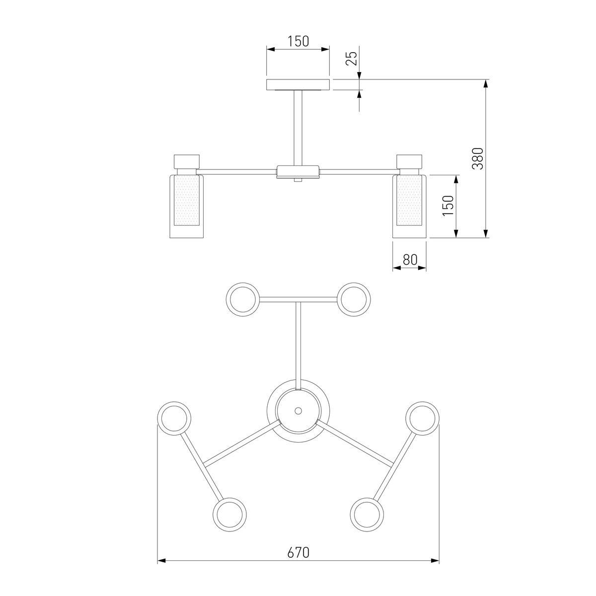 Производитель светильника рекомендует для устройства 6 энергосберегающих ламп с цоколем E14 и мощностью 15 W, что позволит осветить помещение площадью 5 кв.м. Габариты изделия: высота – 380 мм, диаметр – 690 мм.